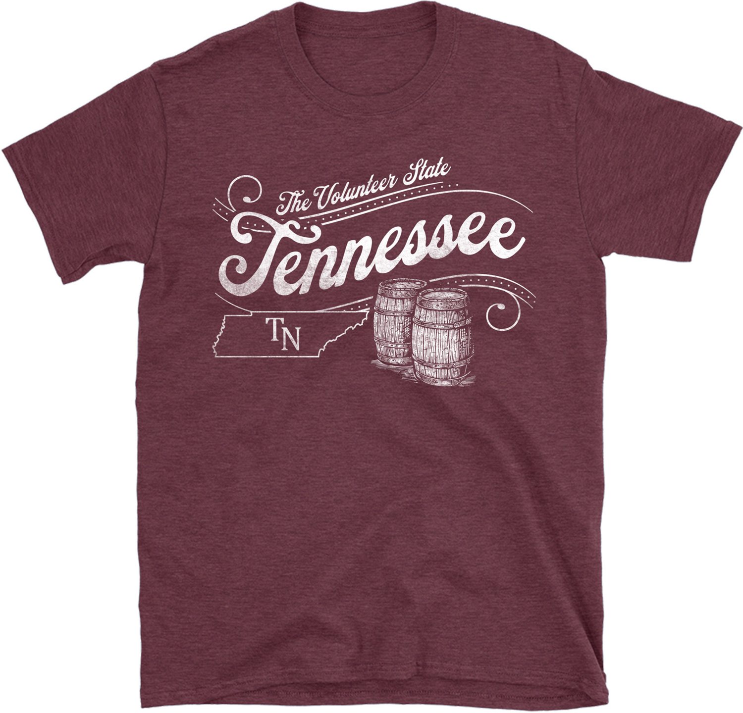 "Tennessee" and a graphic of a whiskey barrel are printed across the front chest