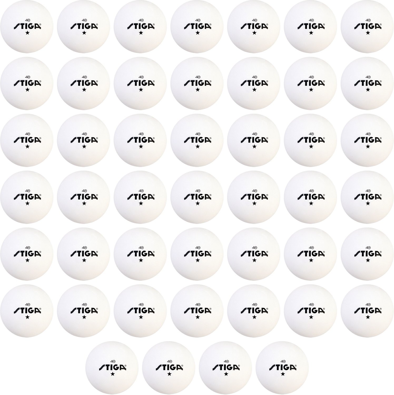 The STIGA 1-Star Table Tennis Ball Multi-Pack includes 46 white STIGA 1-Star 40mm ITTF regulation size and weight table tennis balls. Crafted from high quality ABS material for long-lasting recreational or family play, the seamless, perfectly round design means these high-quality recreational table tennis balls are long lasting and offer consistent bounce and spin. This multi-pack is perfect for practice, parties, clubs, or the family that tends to lose balls easily.