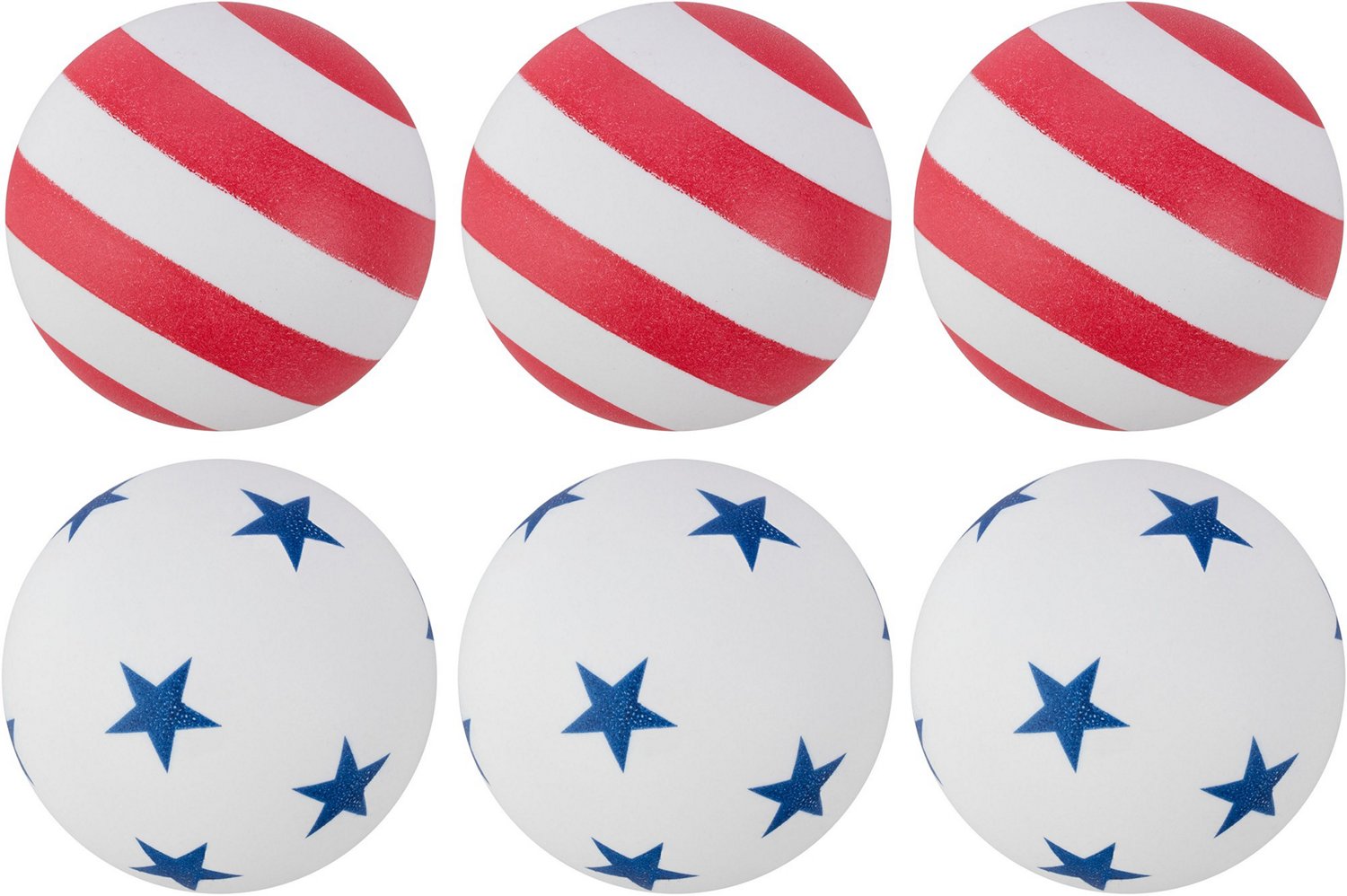 The STIGA Stars and Stripes 1-Star patriotic Table Tennis Balls (6 count) add flare and fun to any game. Featuring 3 stars and 3 stripes table tennis balls for patriotic table tennis enthusiasts, these ITTF regulation size and weight (40mm) table tennis balls are crafted from high quality ABS material for long-lasting recreational or family play. Their seamless, perfectly round design means these high-quality recreational table tennis balls offer consistent bounce and spin.