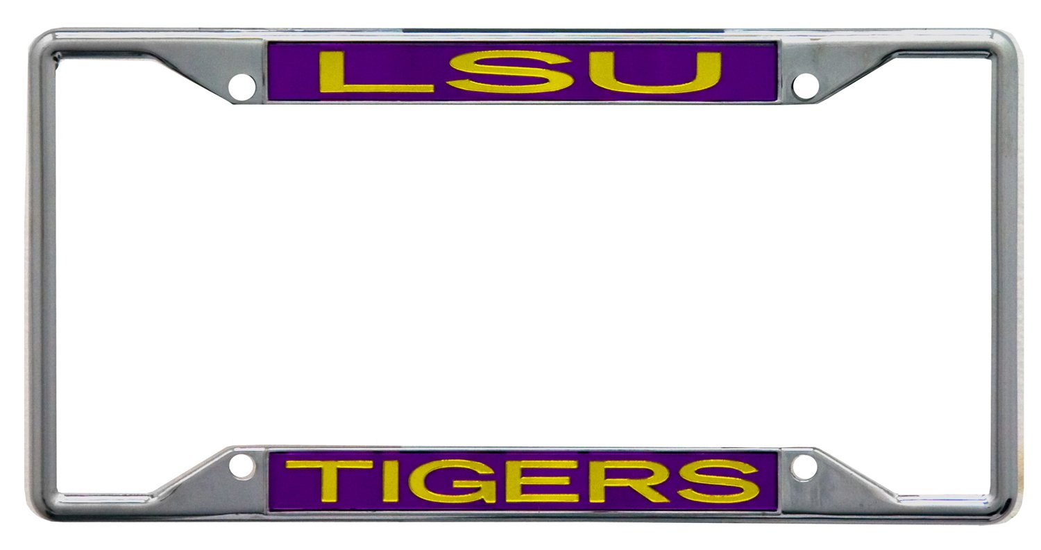 Decorate your vehicle with the Stockdale Louisiana State University License Plate Frame. The metal frame and acrylic inserts afford durability, while the team branding shows off your Tigers pride.