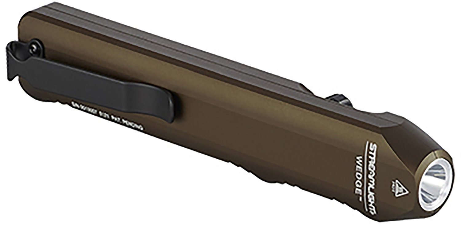Shed light with ease when using the Streamlight 300 Lumens LED Aluminum Coyote USB-C Wedge Flashlight. Tough aluminum construction withstands wear, and the multiple settings provide versatile use. This compact flashlight is sized to fit comfortably in your hand or pocket.