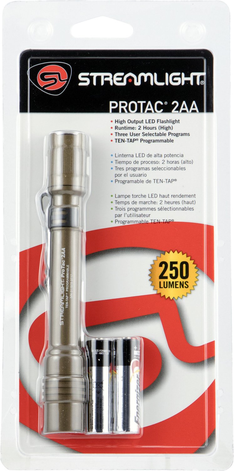 Shed light in the dark with your Streamlight ProTac 250/18 Lumens C4 LED Aluminum Coyote AA (2) Flashlight. Aluminum construction withstands heavy use, and the multiple settings offer versatile use.