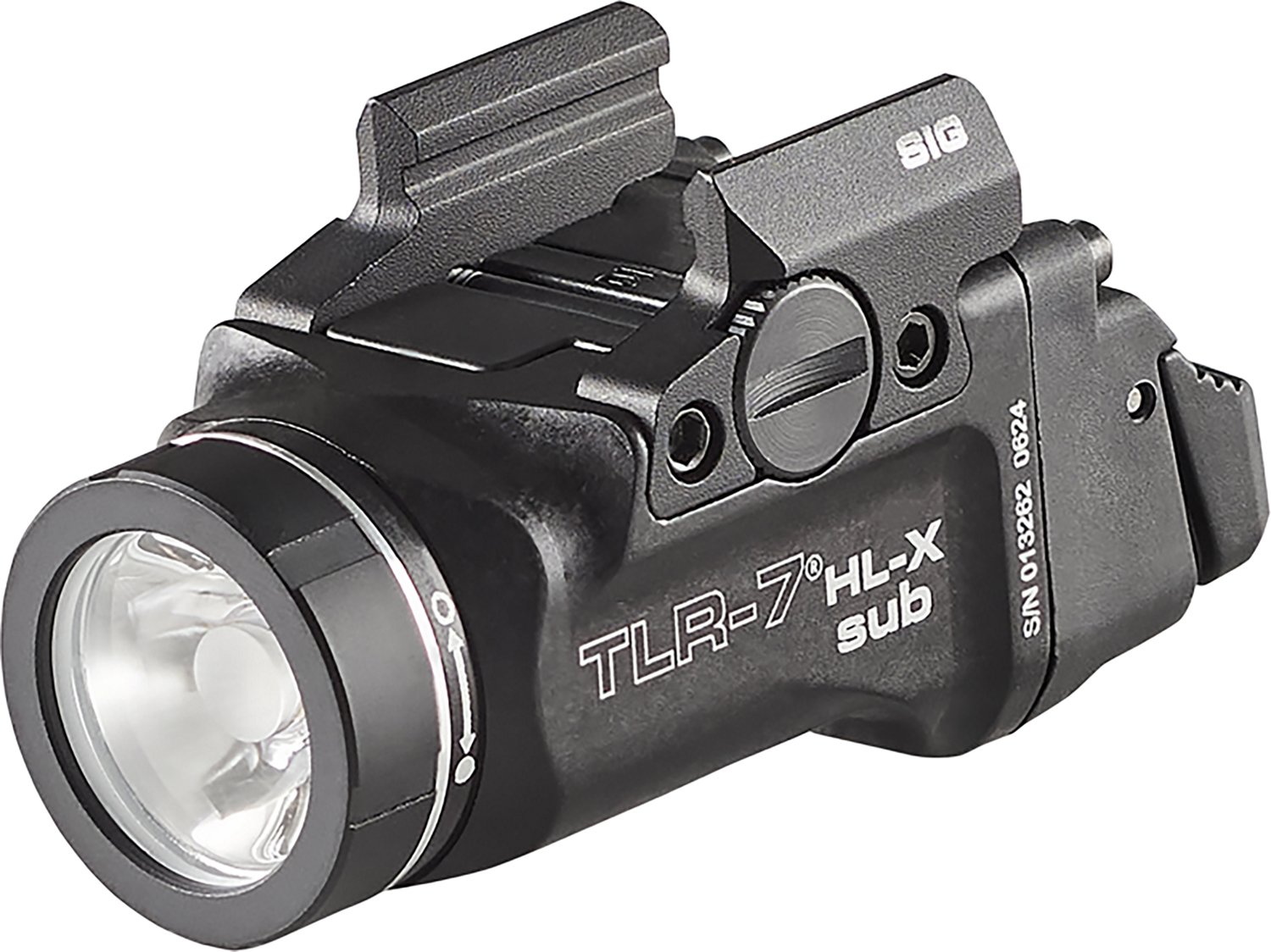 Improve your vision in low visibility environments with the Streamlight TLR-7 HL-X Sub USB Rail-Mounted Light. Its powerful 1,000-lumen beam illuminates dark areas. The 6000 Series machined aircraft aluminum with black anodized finish enhances durability, and its specialized clamp system includes high and low paddle switches to match your shooting style. The light is compatible with SIG SAUER® P365®/XL closed rail systems.