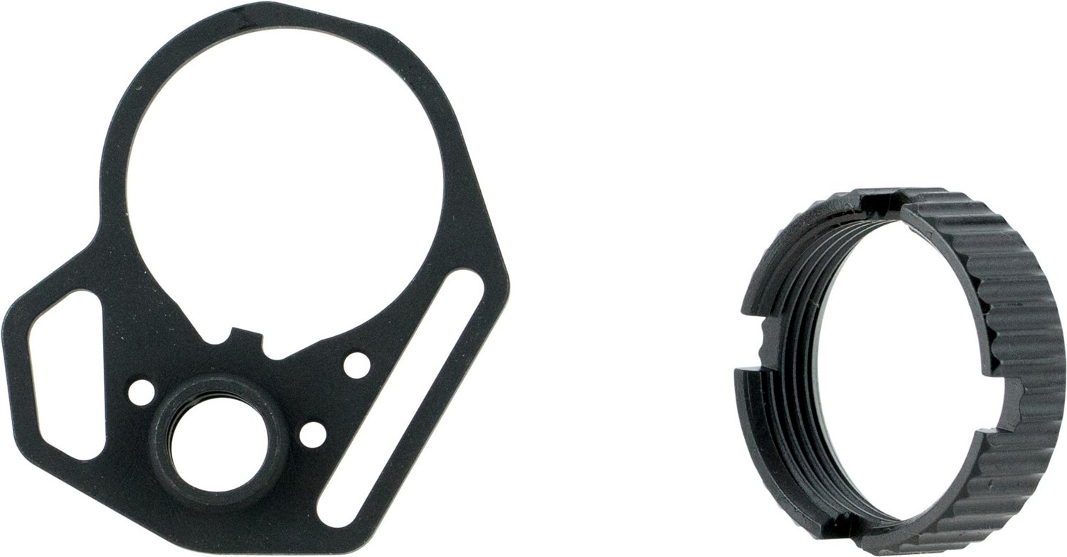 With the Strike Industries Multifunction End Plate and Castle Nut, you be won't be limited to just 1 type of sling mount or attachment style. Both pieces are made from steel and offer an antirotation design. The end plate is also reversible and features 3 sling mounting options, a traditional sling loop and a loop for hook-style attachments.