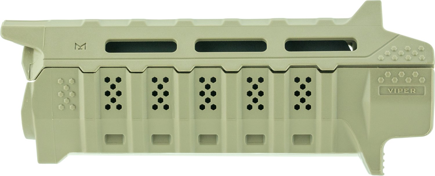 Add safety, grip and room for your accessories to your AR-15 with the Strike Industries Viper Carbine FDE Handguard. It boasts a slim-bottom, drop-in design and is made out of injection-molded polymer. The aggressive styling lends itself to multiple gripping options, as well as top and bottom hand stops and an M-LOK rail system.