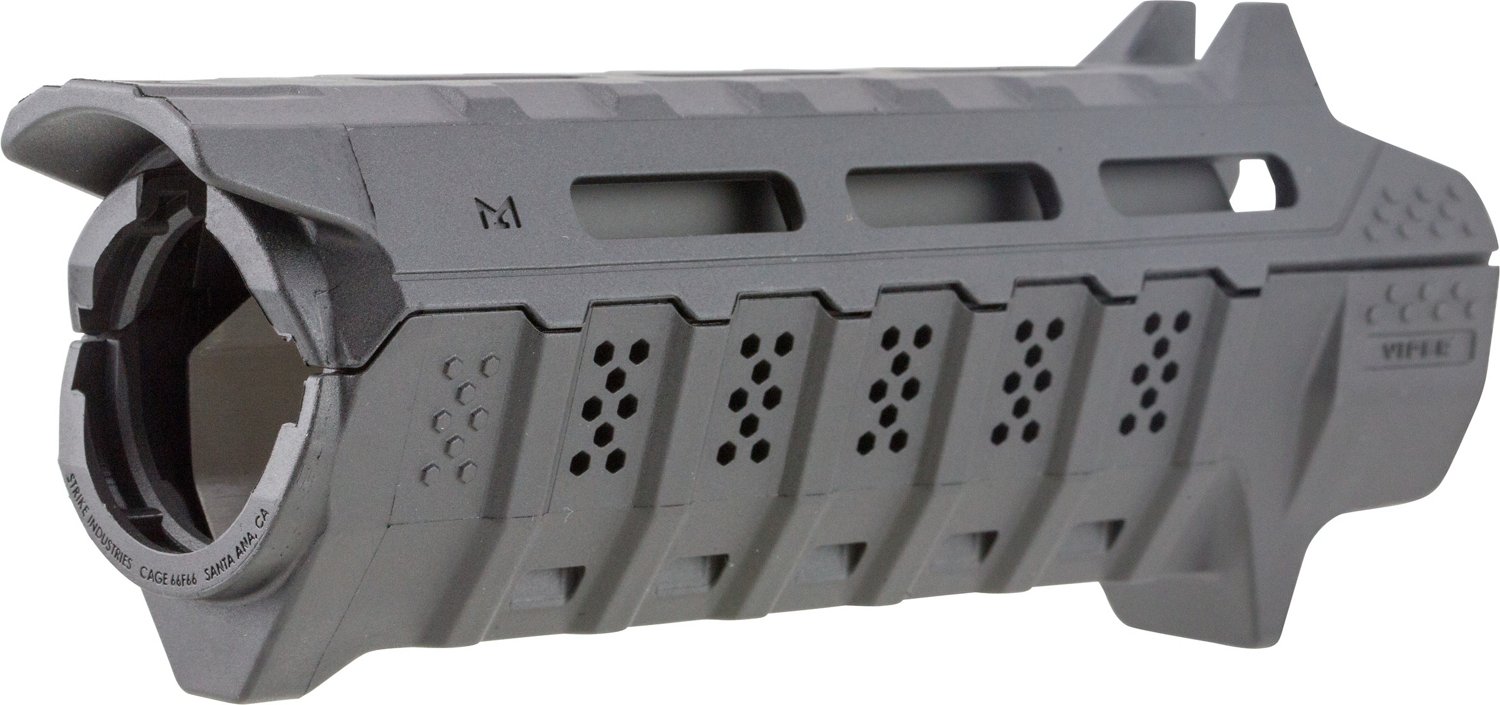 Add safety, grip and room for your accessories to your AR-15 with the Strike Industries Viper Carbine Handguard. It boasts a slim-bottom, drop-in design and is made out of injection-molded polymer. The aggressive styling lends itself to multiple gripping options, as well as top and bottom hand stops and an M-LOK rail system.
