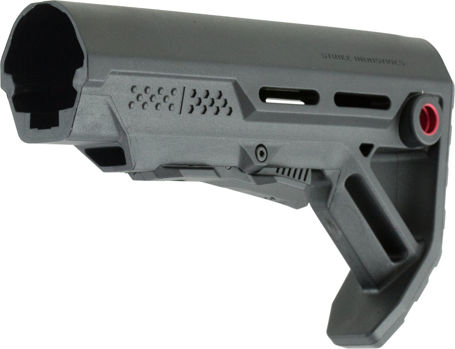 The Strike Industries Viper MIL-SPEC Buttstock offers a 9.25- to 12-inch length of pull. It's made from glass-reinforced polymer and fits AR-15, M16 and M4 firearms. It also employs the use of MIL-SPEC-size receiver extension tubes.