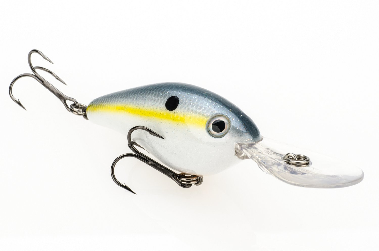 Take the Strike King 8XD Pro-Model 1-1/2 oz. Crankbait along on your next fishing trip. This crankbait draws the attention of bass and features a treble hook and a curved bill for fast diving. Dives to 20'.