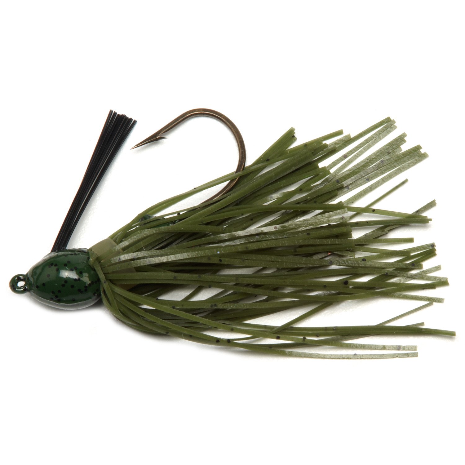 The Strike King Bitsy Bug Mini Jig™ 3/16 oz. attracts fish without getting stuck in the weeds thanks to the fiber weedguard. The snagless and weedless head design helps prevent the jig from getting wedged in the rocks, and the premium silicone skirt provides lively action. 3/16 oz.