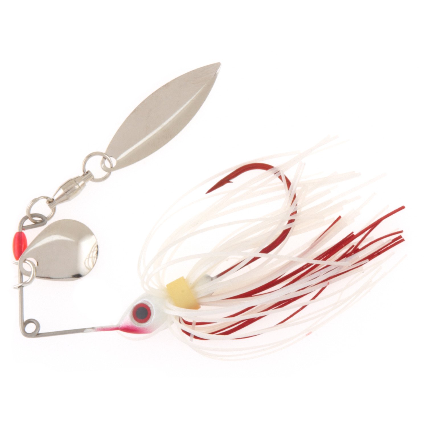 Use this Strike King Bleeding Bait® Mini-King® Spinnerbait to catch multiple species of fish. The Bleeding Bait® red hook lures in fish and secures your catch, and the Bleeding® accent skirt looks like blood to attract bites. Premium components.