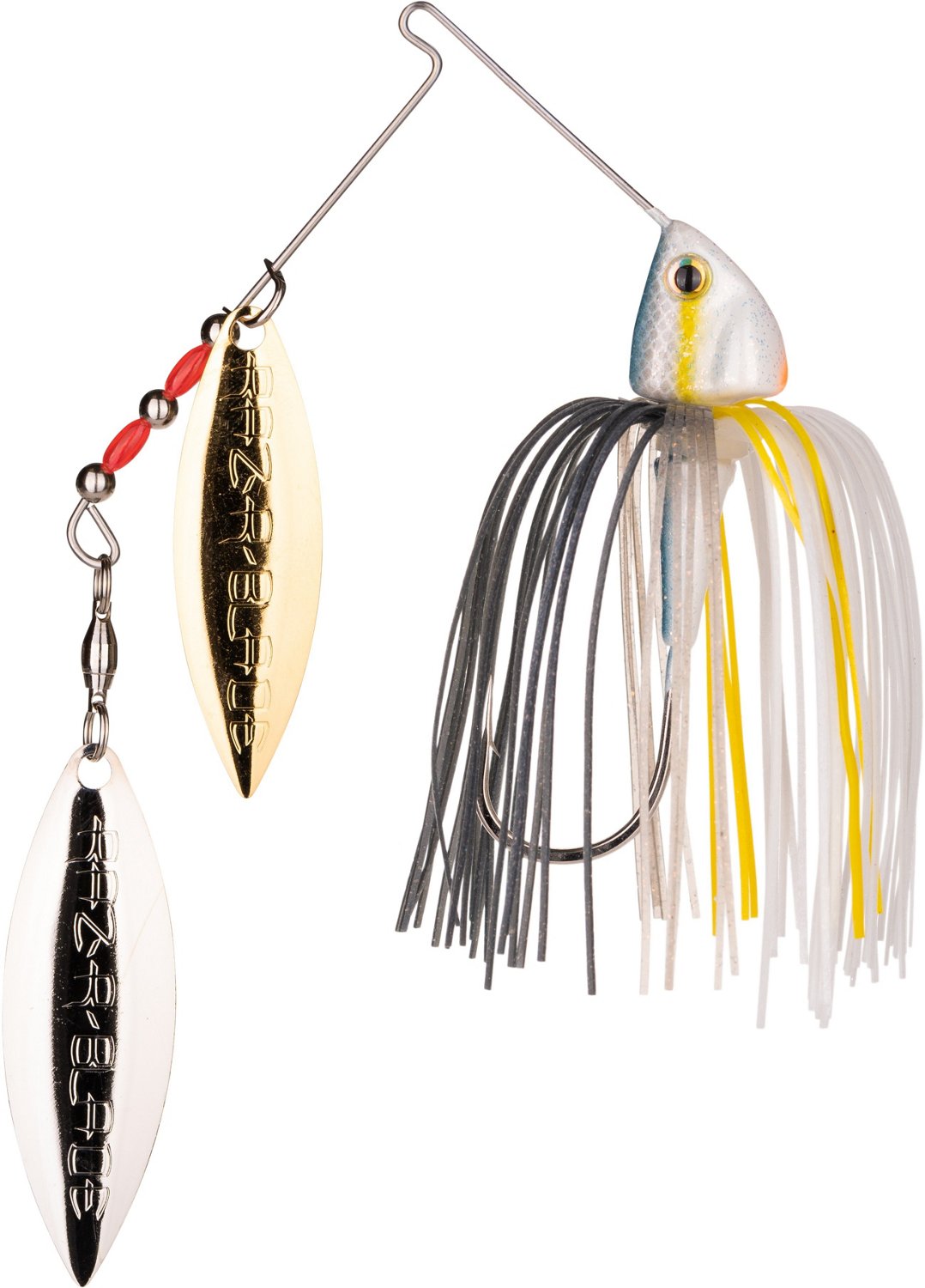 The Strike King Burner 1/2 oz Spinnerbait works best with high-speed, clear applications. The Raz-R-Blade High RPM Blade keeps the bait from lifting, and the compact head reduces drag and produces the bait is designed to swim just under the water's surface to mimic a real minnow.