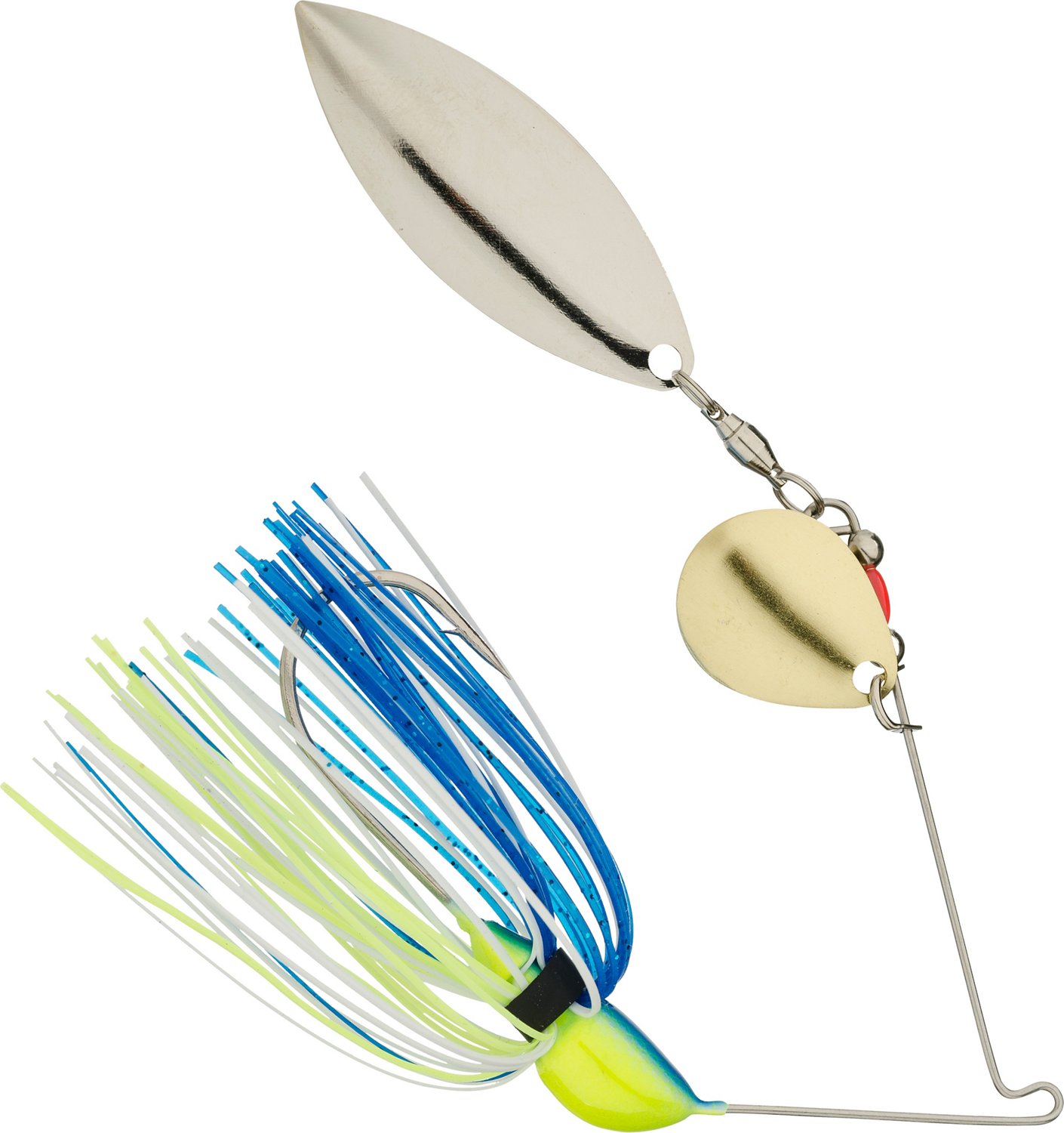 Whether you're fishing a marshy pond or casting your line at the reservoir, the Strike King Hack Attack 3/8 oz. Spinnerbait grabs the attention of freshwater bass with its colorful skirt and eye-catching Turtle blade combination. Nickel single hook.