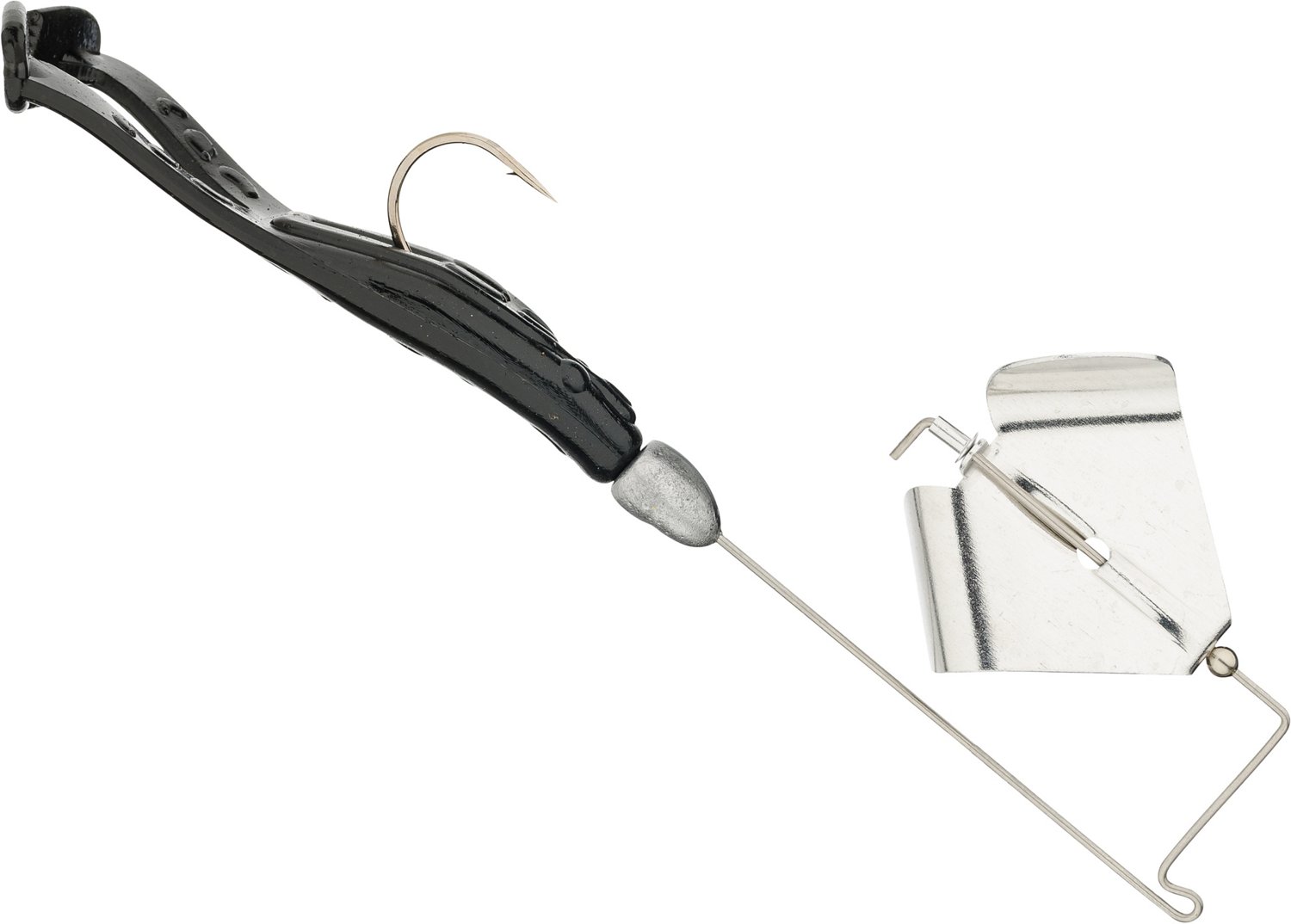 Kicking frog legs and a squeaky buzzbait propeller prompt fish to attack
