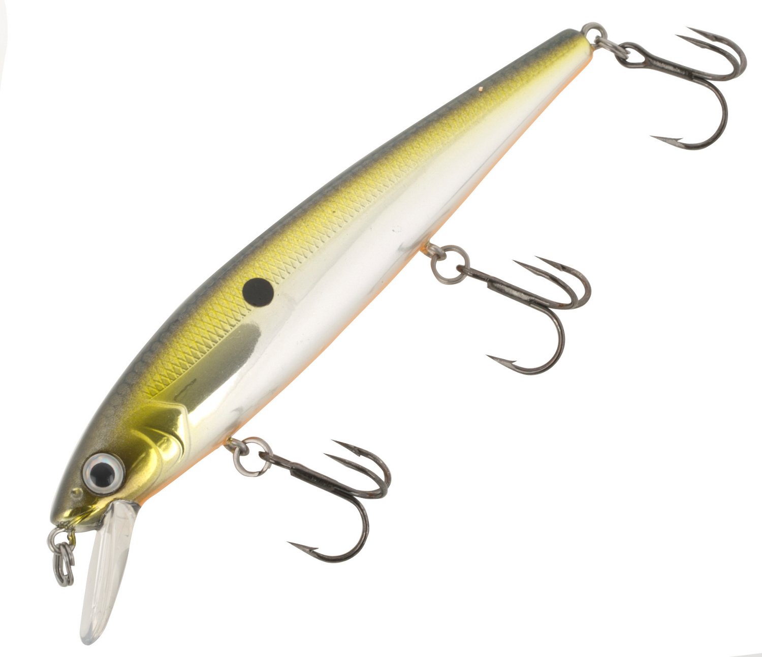 Great for attracting bass, the Strike King KVD 300 Slash Bait uses a combination of rolling, wiggling and flashing to attract fish and is designed for freshwater use. This jerk bait has a weight transfer system to promote castability and features 3-D eyes and 3 No. 4 black nickel premium treble hooks. 4-3/4" long.