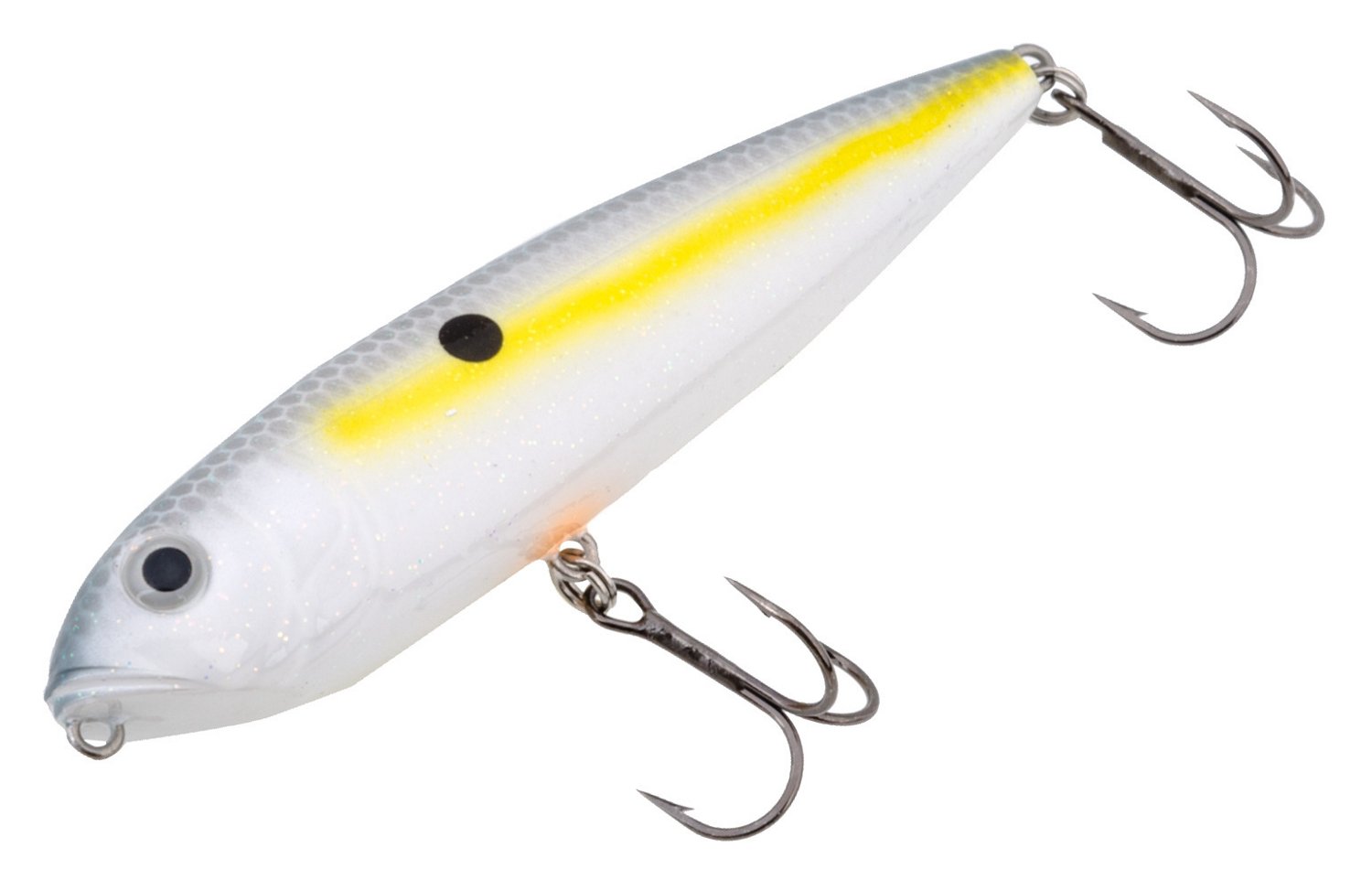 Turn your favorite fishing spot into a bass hot spot with the Strike King KVD Sexy Dawg Junior 3-1/2" Topwater Bait. Great for freshwater use, the bait features a lifelike design with natural colors and 3-D eyes, and the interior rattles entice your prey and provoke strikes. The shank treble hook helps secure your catches.