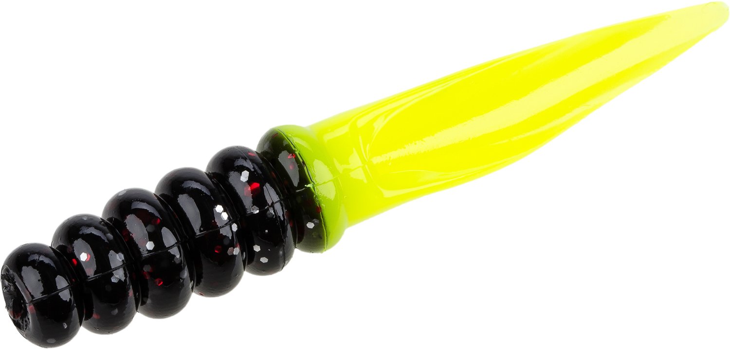 The Strike King Mr. Crappie Slab Slangers 15-Pack feature a ribbed body with a spade tail and a secret pocket for scent. Designed to catch monster slabs in heavy cover. For use with jig heads. 2.25"L.