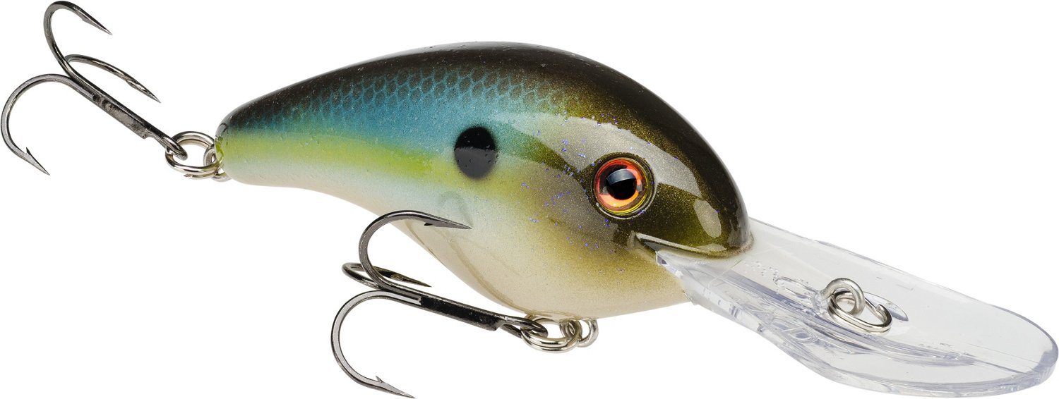 The Strike King® Pro-Model® 5XD Crankbait is made from sculpted plastic for durability and features a natural shape and color with 3-D eyes and rattling action to help attract the attention of freshwater bass. The crankbait has a 2° diving plane for long casts and can dive to 15'. 1/2 oz. Size 4 treble hooks.