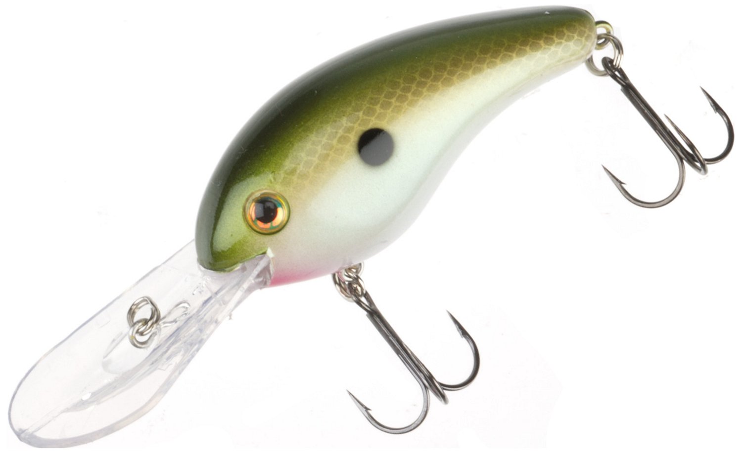 The Strike King® Pro-Model® 5XD Crankbait is made from sculpted plastic for durability and features a natural shape and color with 3-D eyes and rattling action to help attract the attention of freshwater bass. The crankbait has a 2° diving plane for long casts and can dive to 15'. 1/2 oz. Size 4 treble hooks.