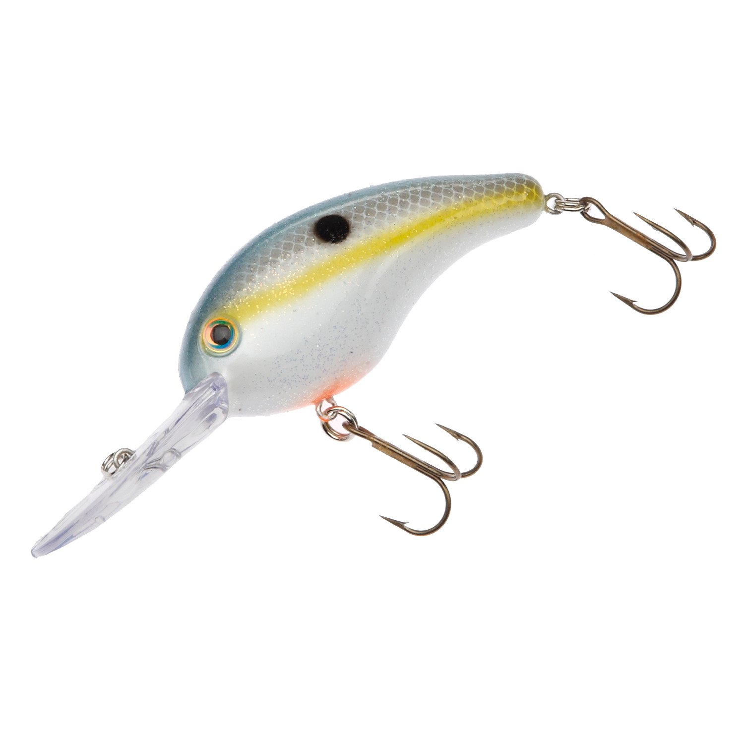 Secure your catch with the Strike King® Pro-Model® Series 5 Crankbait, which features a buoyant, medium-sized body with a wobble to attract bites. A 2° diving plane allows for long casts and deep depths, and the ABS plastic construction provides durability. The 3-D eyes provide a realistic appearance. This bait is ideal for attracting bass in freshwater fishing applications and has two No. 4 treble hooks.