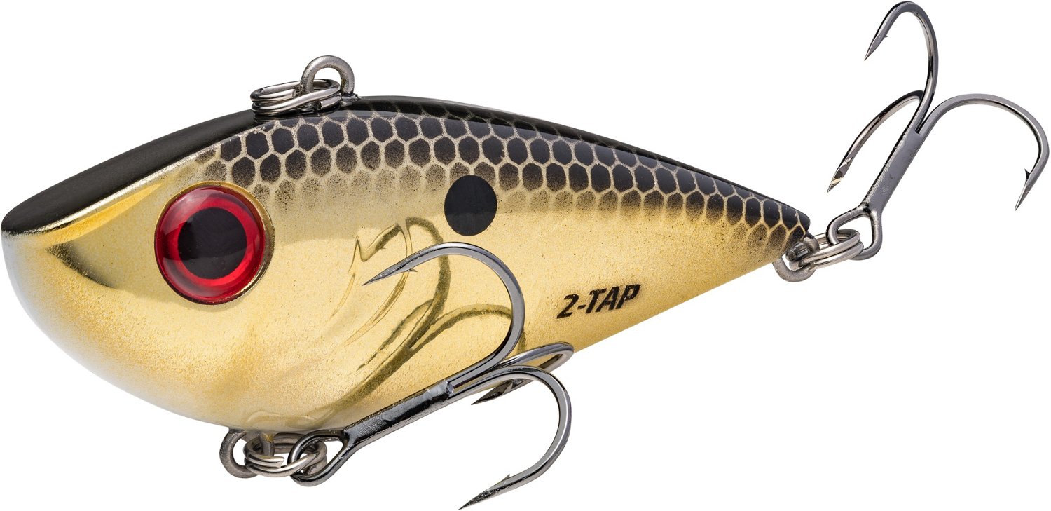 Set yourself apart on the water with the Strike King Red-Eyed Shad Tungsten 2-Tap 1/2 oz Crankbait. The unique tungsten chamber produces a distinct rattle that entices bass from near and far to investigate your line, and the shad-imitating body is built with realistic, 3-D eyes to increase desirability in the water. Premium, VMC Vanadium cone-cut hooks help to keep your catch on the line.