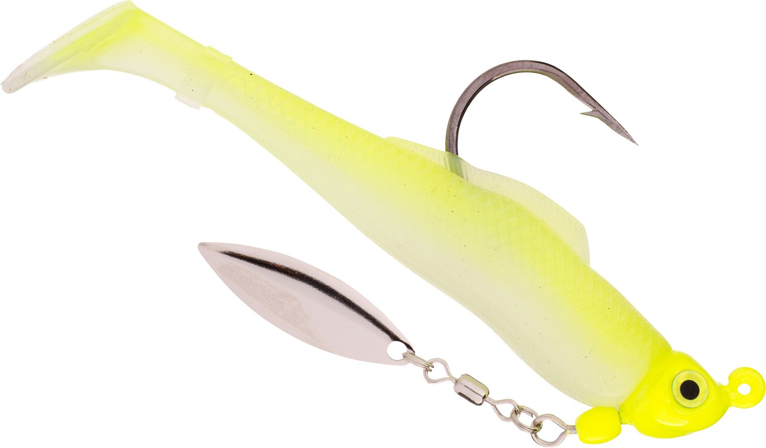 Whether you're fishing in stained or clear water, the Strike King Speckled Trout Magic 1/4 oz. Saltwater Jig draws hungry sea trout and redfish to your line with its flashing, eye-catching under-spin blade and lifelike 3-D eyes. Single hook.