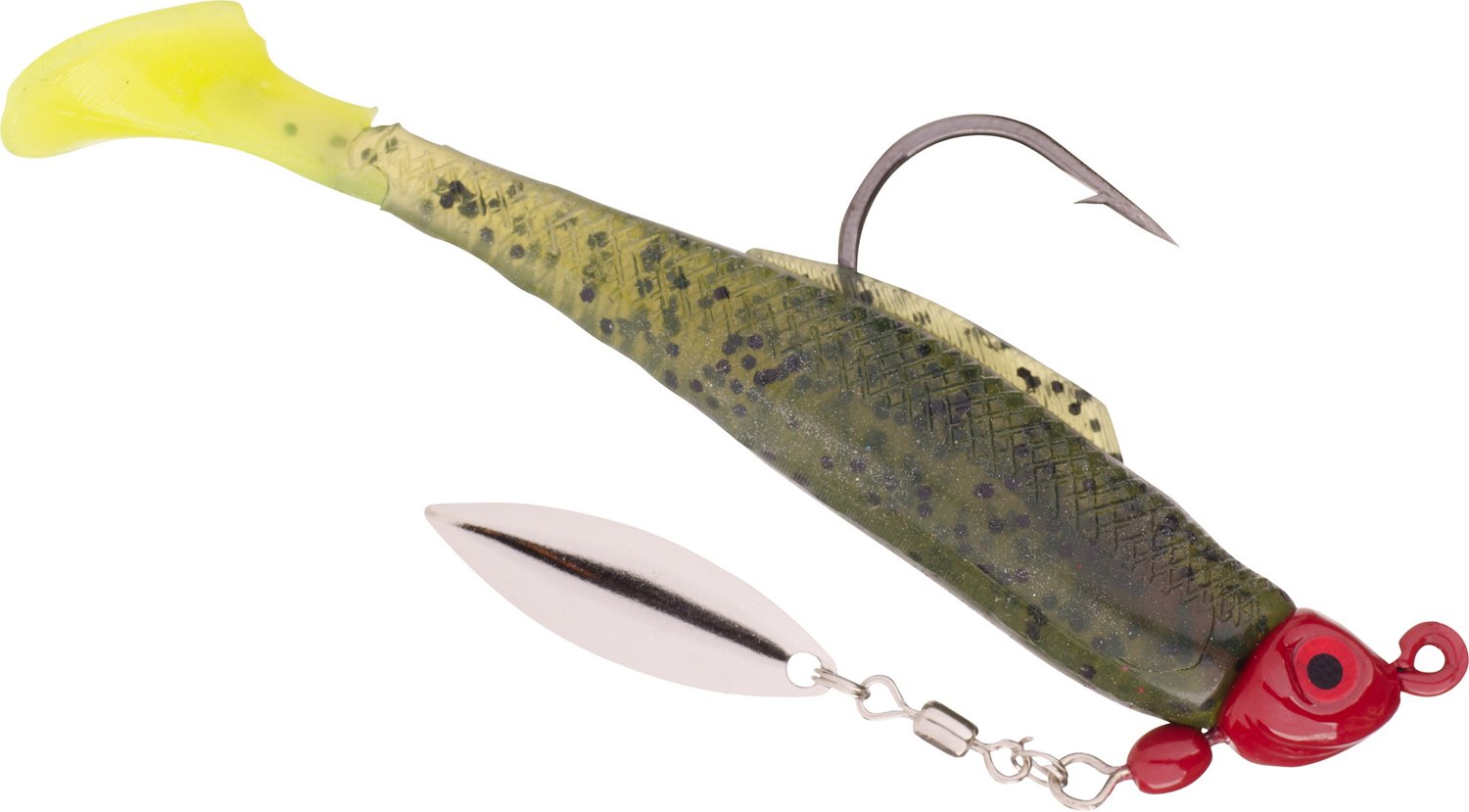 Whether you're fishing in stained or clear water, the Strike King Speckled Trout Magic 1/4 oz. Saltwater Jig draws hungry sea trout and redfish to your line with its flashing, eye-catching under-spin blade and lifelike 3-D eyes. Single hook.