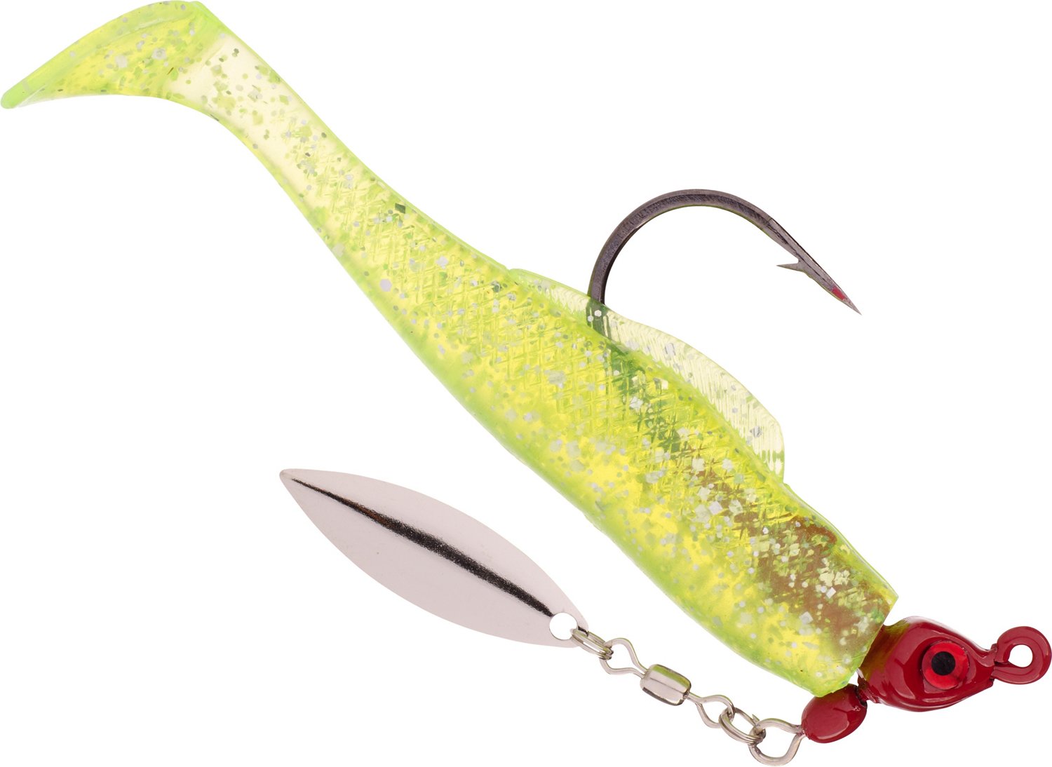 Whether you're fishing in stained or clear water, the Strike King Speckled Trout Magic 1/8 oz. Saltwater Jig draws hungry sea trout and redfish to your line with its flashing, eye-catching under-spin blade and lifelike 3-D eyes. Single hook.