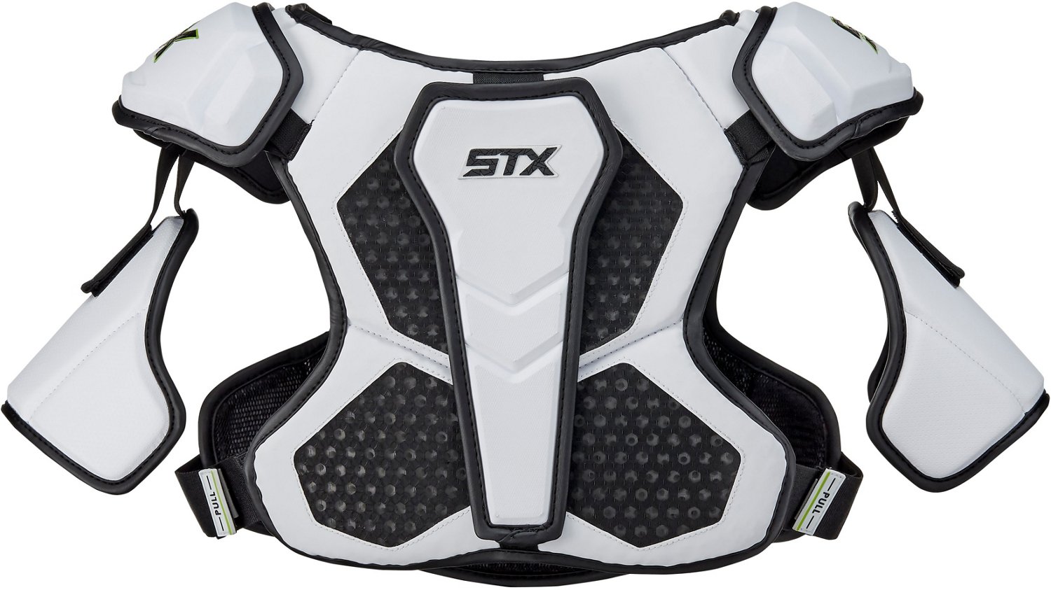 Ensure your safety and mobility with the STX Cell 5 Lacrosse Shoulder Pads. The GeoFlex II™ construction provides flexible protection across the equipment, and the shoulder pads meets the NOCSAE safety standards to protect your chest. The 7-point stretch zones built into the pads offer increased mobility, and the T.A.C™ system ensures the gear is secure during practice and games.