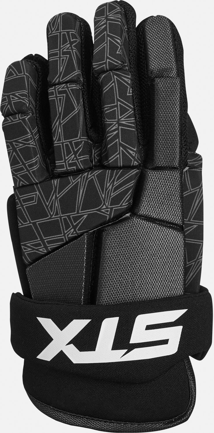 The STX Adults' Stallion 75 Gloves are ideal for beginner players who are looking to learn the game of lacrosse. The polyester shell withstands wear and tear while feeling light and comfortable, and the ventilated palms and gussets keep your hands cool and dry. A 3-piece thumb design does not restrict mobility.