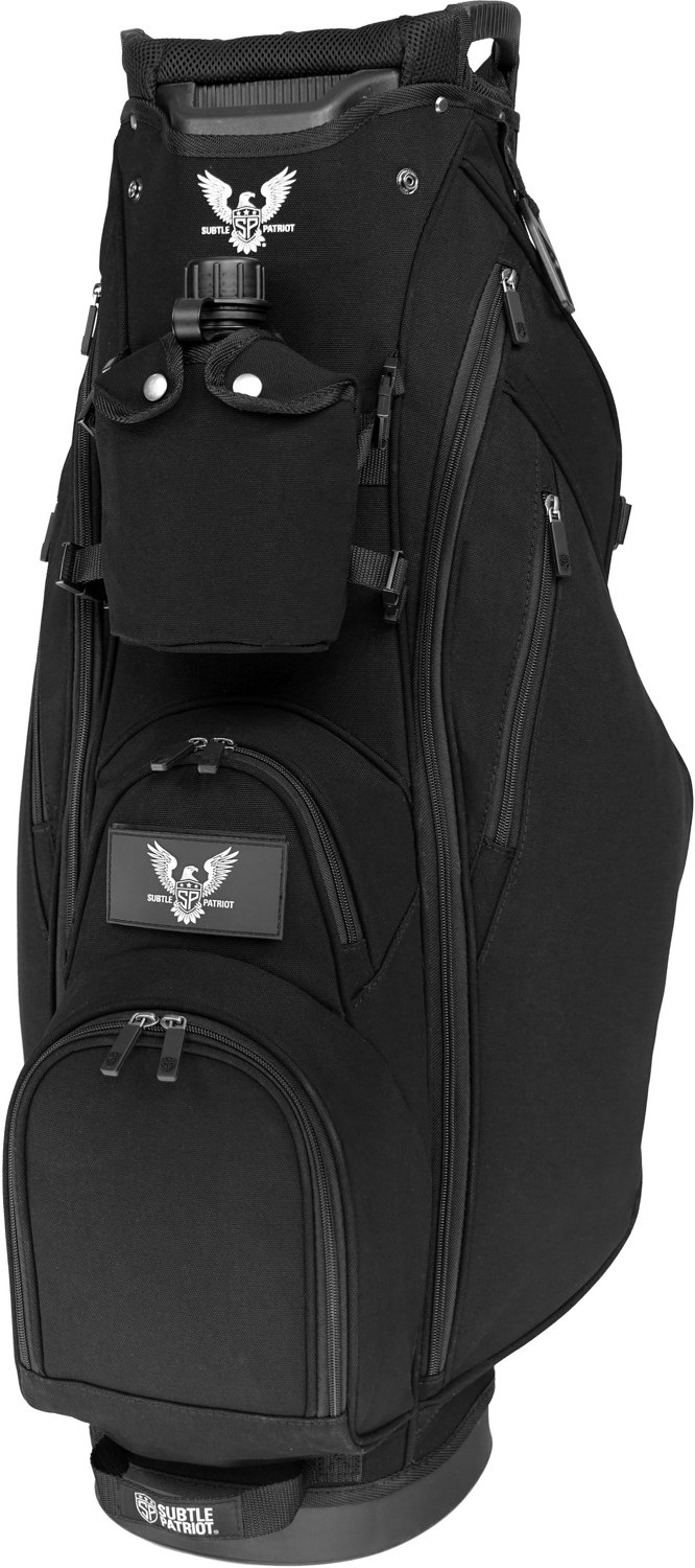 The Subtle Patriot Warrior Travel Golf Cart Bag Cover will protect your clubs and adapt to your needs. A set of internal compression straps help keep your clubs in place during travel, and there is various space for your gear due to the large main compartment and folded hat hutch. The 6-wheel hybrid bottom lets you choose whether you want to roll the bag, have it stand upright along your side or pull it in a reclined position behind you.