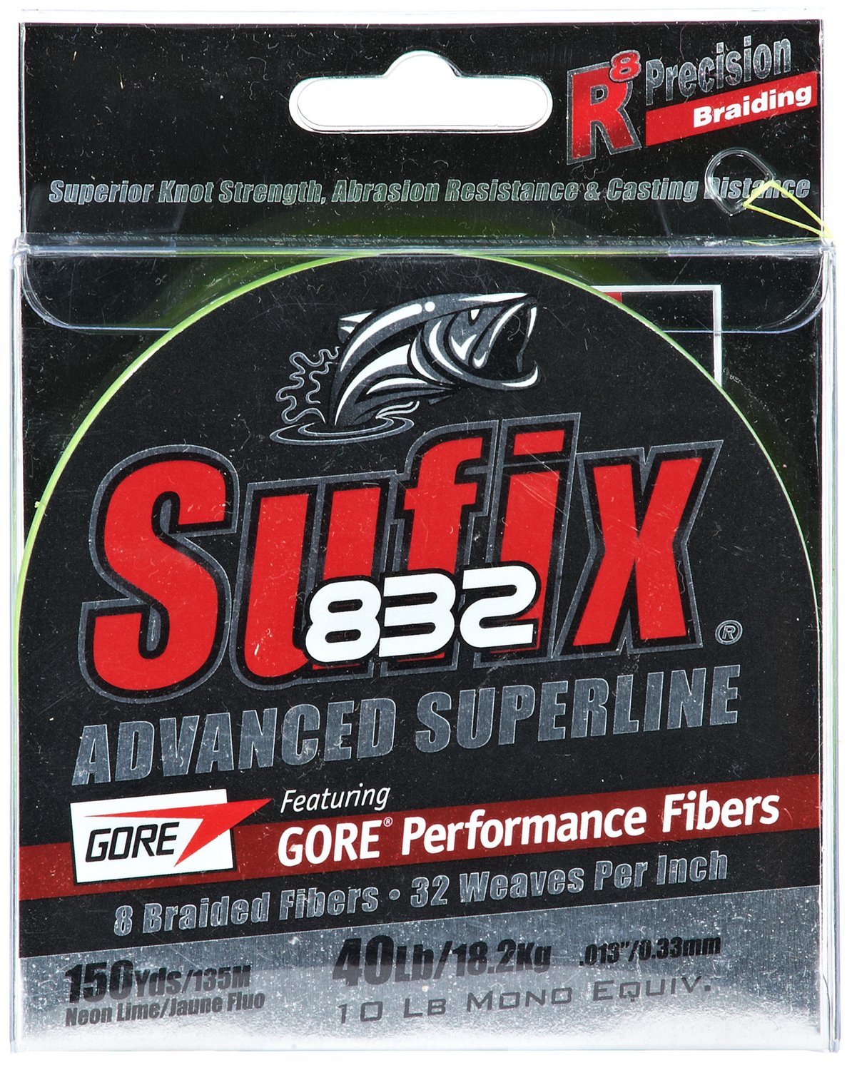 The Sufix 832 Advanced Superline 40 lb. - 150 yards Braided Fishing Line is made with R8 Precision Braiding Technology, which combines 7 Dyneema fibers and GORE performance fiber for line strength, abrasion resistance and long casting distance. TGP Technology helps the line keep its color. Hydrophobic water-repellent protection.