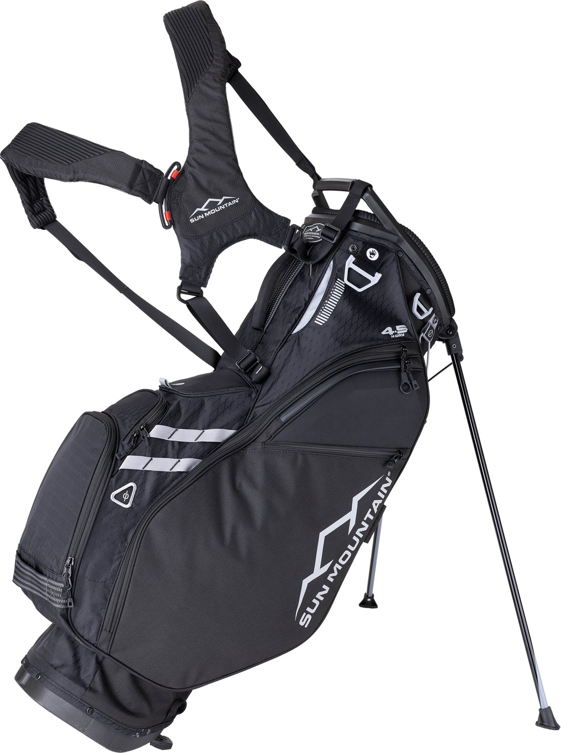 Tote your clubs in style with the Sun Mountain 2024 4.5 L Stand Bag. 14 full-length dividers keep clubs organized, while 8 extra compartments include a valuables pocket, range finder pocket, apparel pocket and ball pouch. The pass-through straps let you secure the bag to a cart without restricting pocket access.