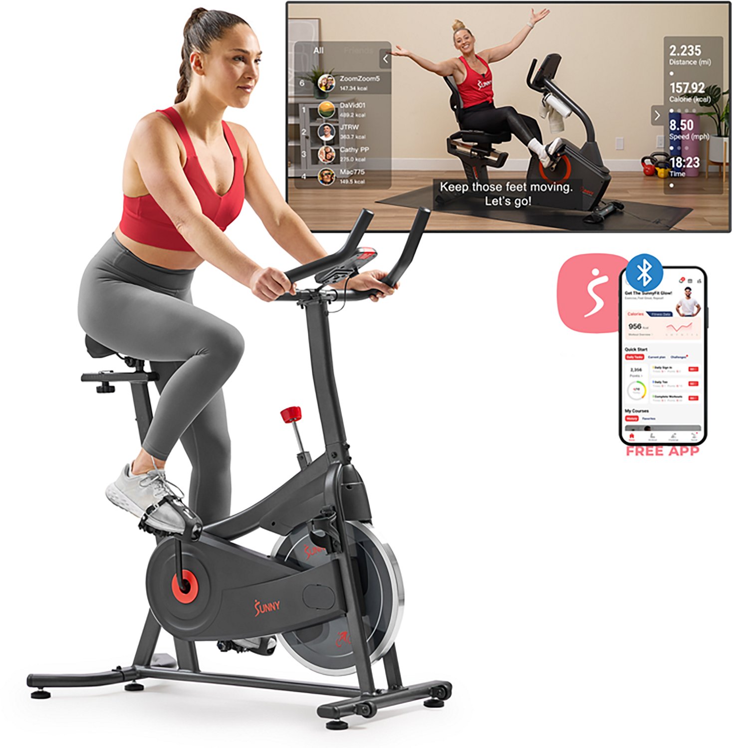 Elevate your fitness with the Sunny Health & Fitness ACTIVE 100 Smart Magnetic Cycling Exercise Bike. The belt-driven system features a stepless magnetic resistance system, and the quiet design reduces noise during your session.