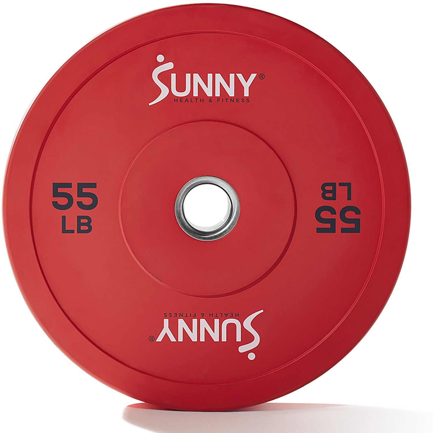 The Sunny Health & Fitness Elite 2-Inch Rubber Olympic Bumper Weight Plate – Single is made with high quality SBR that minimizes shock. Its high density rubber with solid stainless steel inserts are engineered to endure repeated drops, reducing noise and vibration, and its color coded bumper plates simplify your workouts with quick weight selection. The sleek, scratch resistant rubber coating offers an easily maintainable surface.
