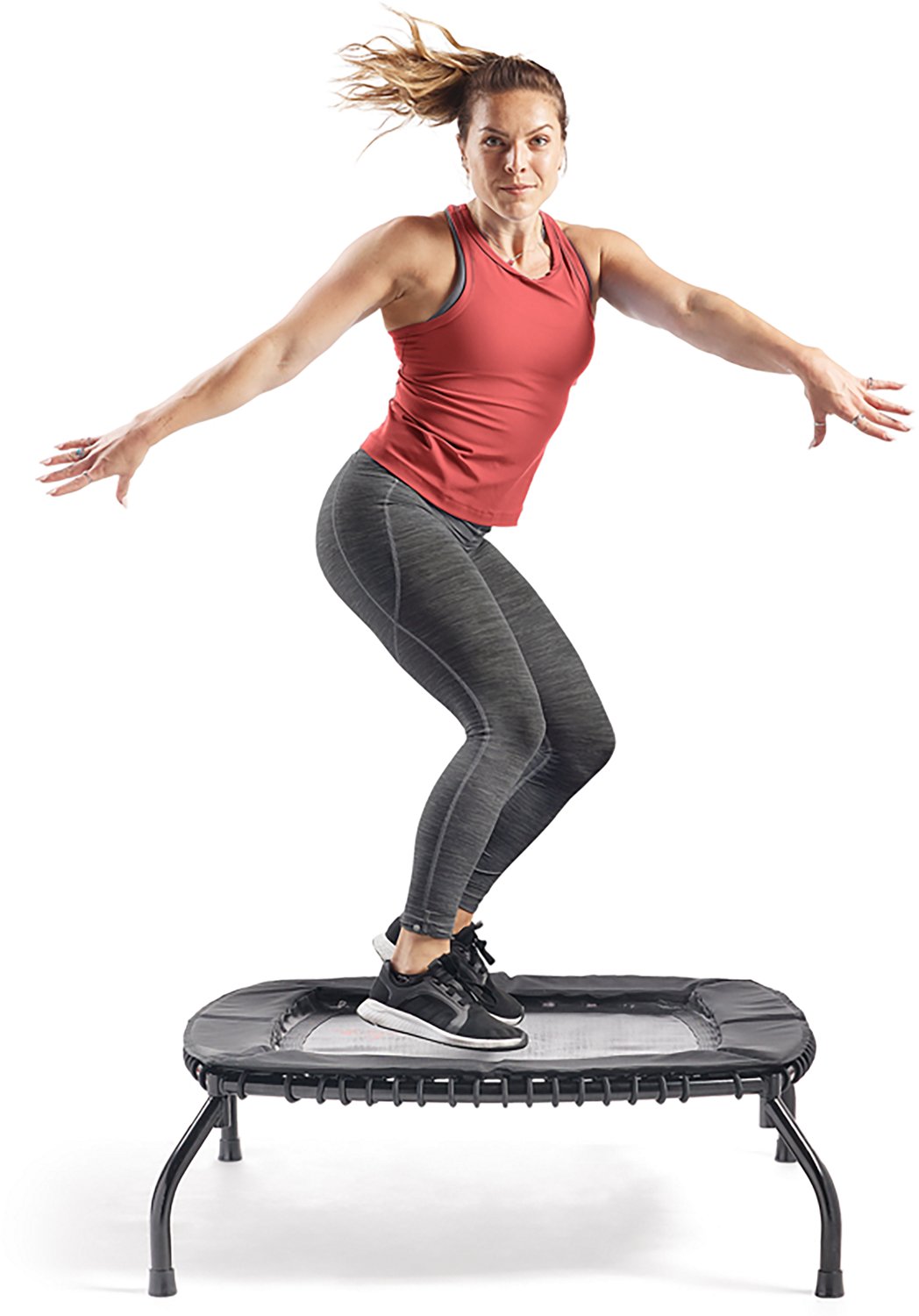 Add some bounce to your fitness routine with the Sunny Health & Fitness 39.4 in x 39.4 in Square Exercise Trampoline. The sturdy construction is built to last, while the unique square shape with adjustable bungee cords provides plenty of bounce. The side coverings promote safety with each jump.