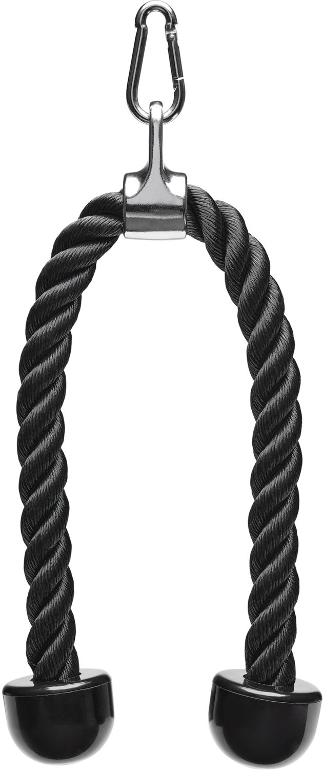 Enhance your workout with the Sunny Health & Fitness Triceps Rope Cable Attachment. It enables a full body workout experience with exercises including triceps pull-downs, facial lifts, rope hammer curls and more. It is crafted from large load-bearing nylon rope for durability and reliability during intense workout sessions, and the carbon chrome attachment with a stainless-steel carabiner offers added strength.