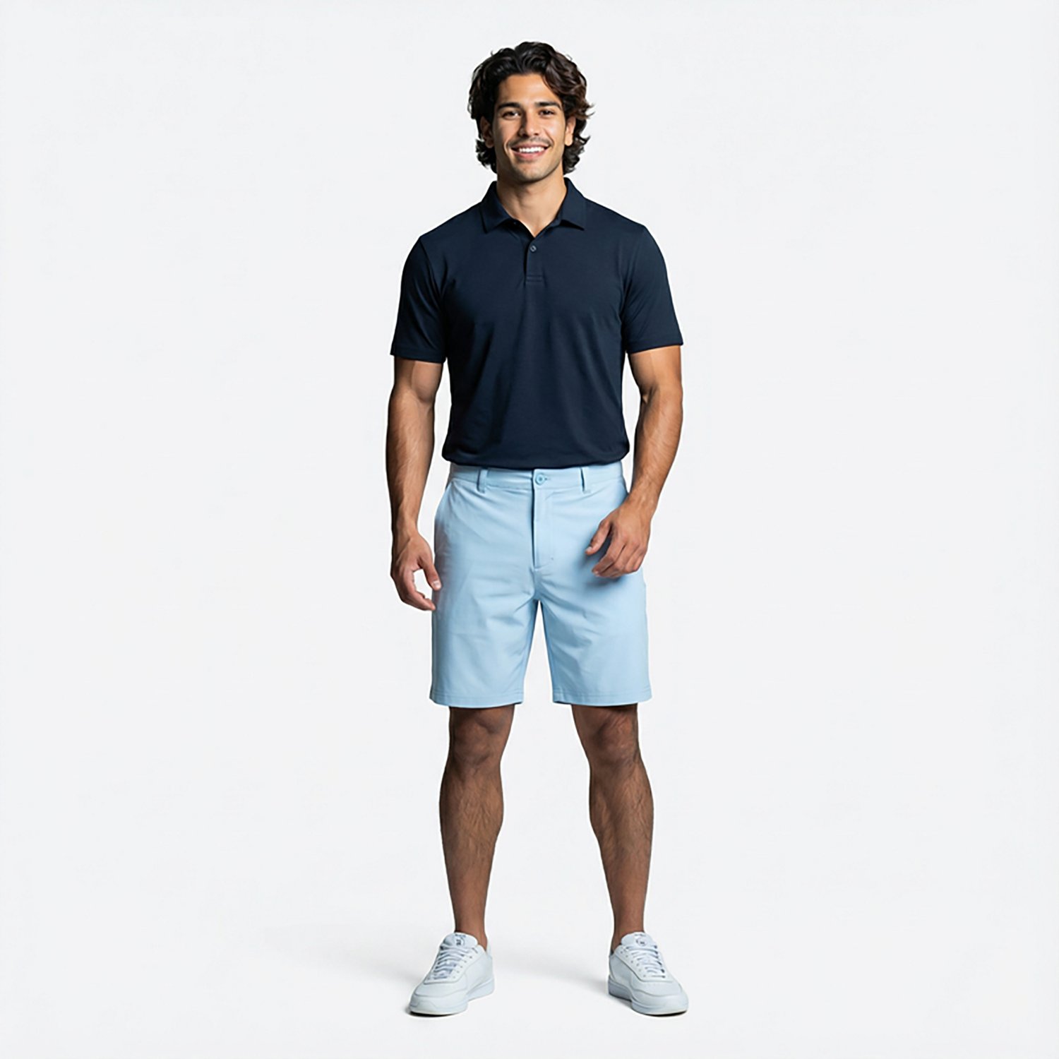 Look your best in the Swannies Men's Fairway Shorts 8 in. It is made of 77% nylon and 23% spandex. The comfortable performance fabric enhances breathability, and its full-stretch provides flexibility and comfort for a full range of motion. The shorts run small, so size up for a more comfortable fit.