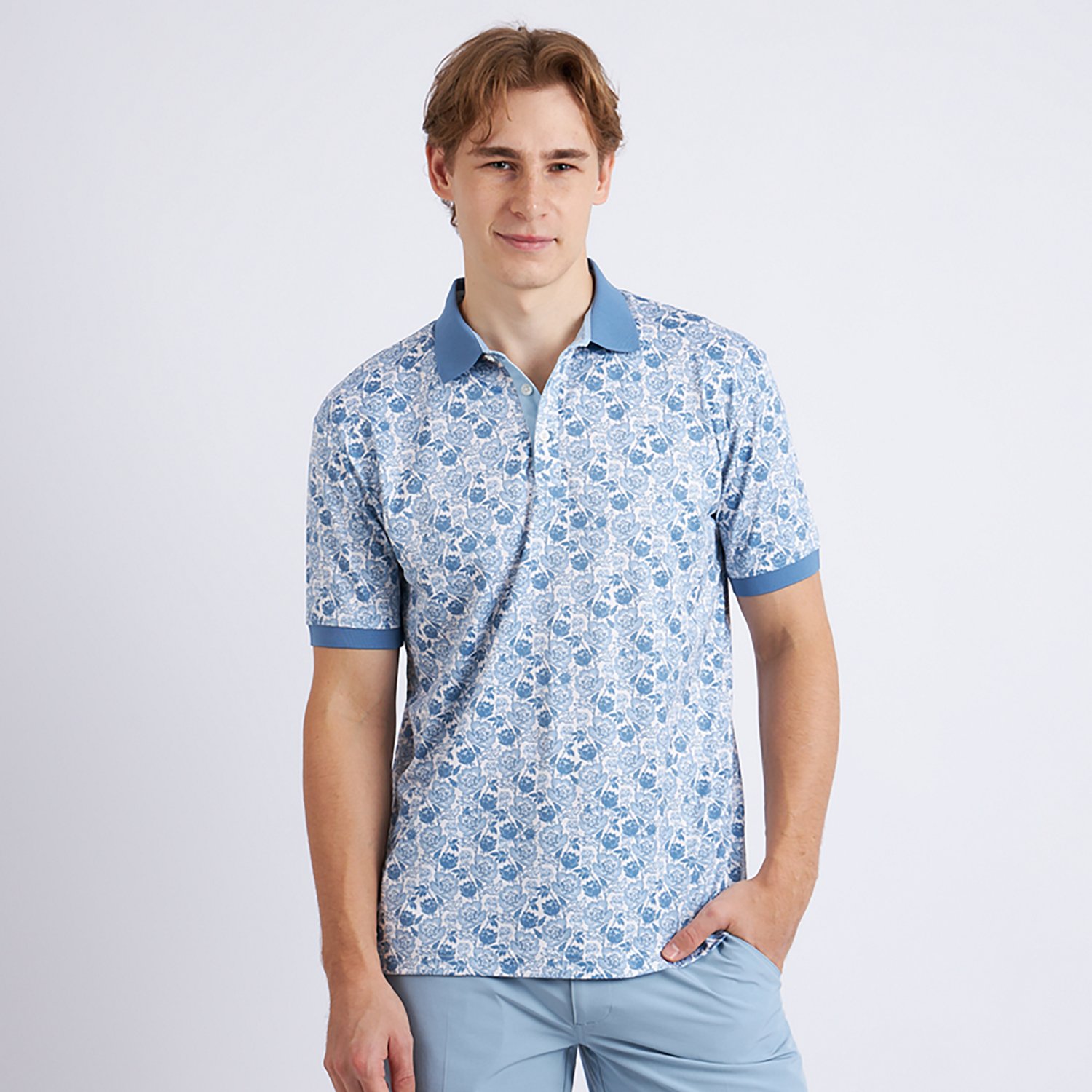 Look your best when you wear the Swannies Men's Haven Polo Shirt. The REPREVE polyester and spandex fabric provides a comfortable feel, while the moisture wicking technology helps keep you cool and dry. The 4-ay stretch technology promotes mobility, and the floral pattern offers a stylish touch.