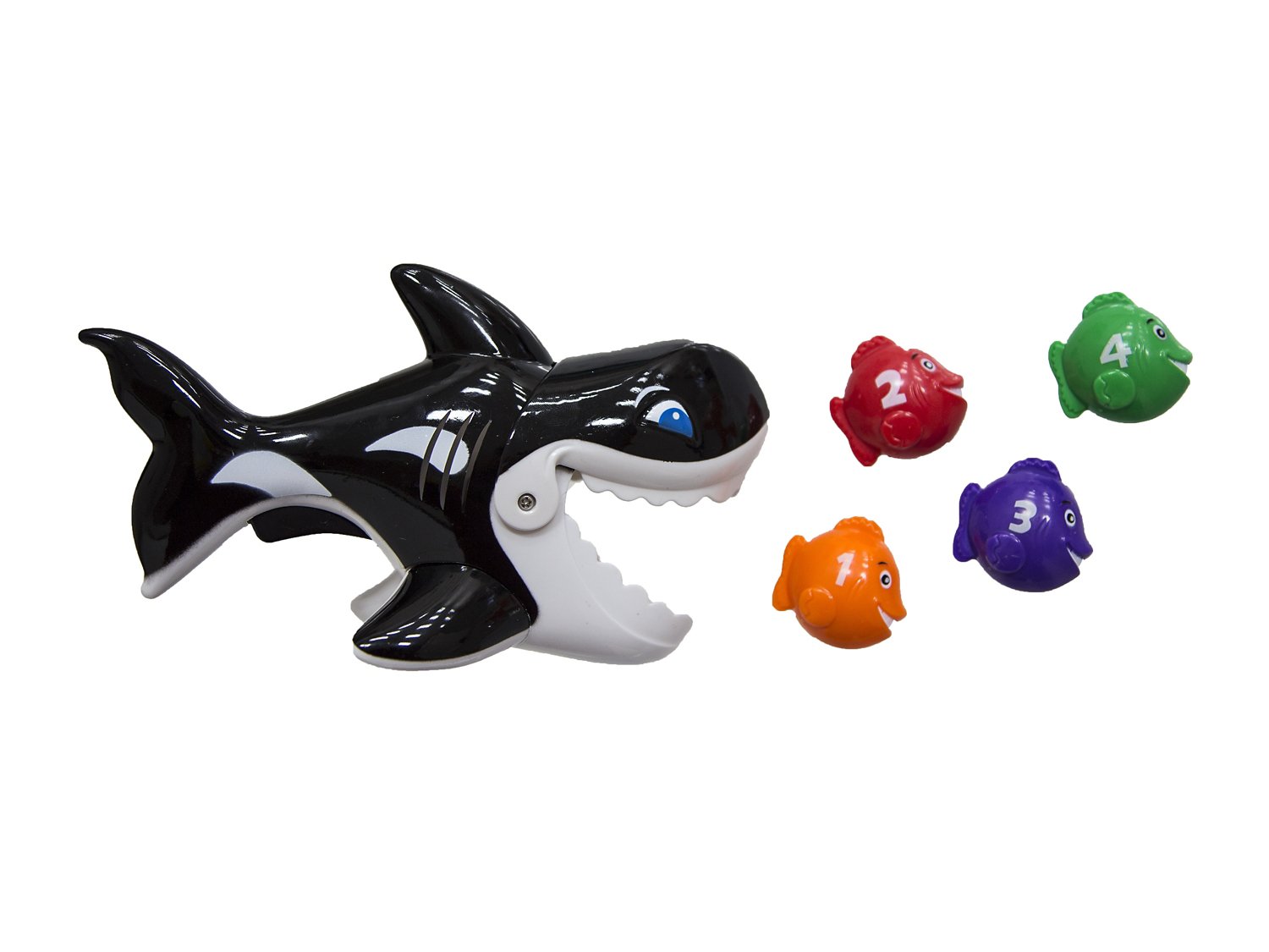 Young swimmers will gain confidence in the water while having a blast when they play with the SwimWays Gobble Gobble Guppies Game. The 5 guppies float on top of the water, and a squeeze of the trigger will open the shark's mouth, allowing children to gobble all of the guppies as fast as possible.