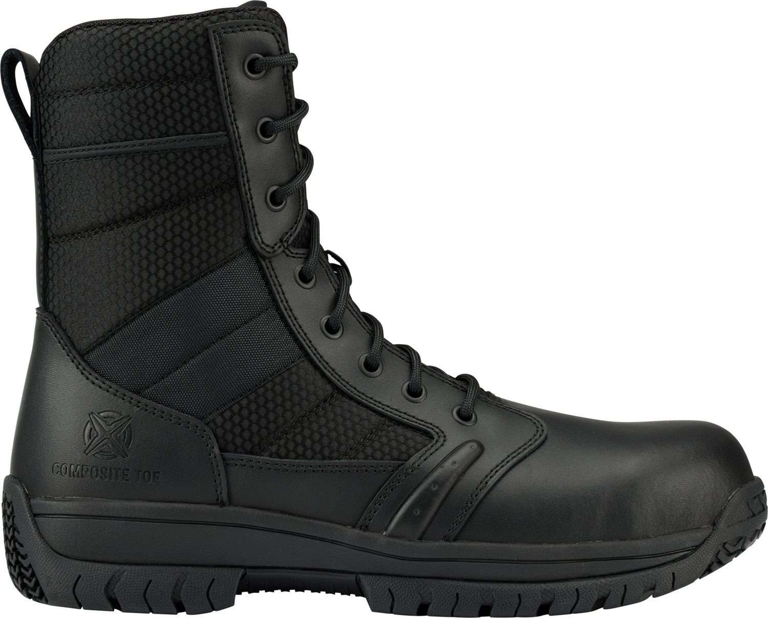 Protect your feet while on the job with Tactical Performance Men's Hawk 8 in Composite Toe Work Boots. The leather and textile uppers provide a combination of flexibility and strength, while slip-resistant rubber outsoles keep you on your feet. The EVA midsoles provide comfort through a tough day of work.