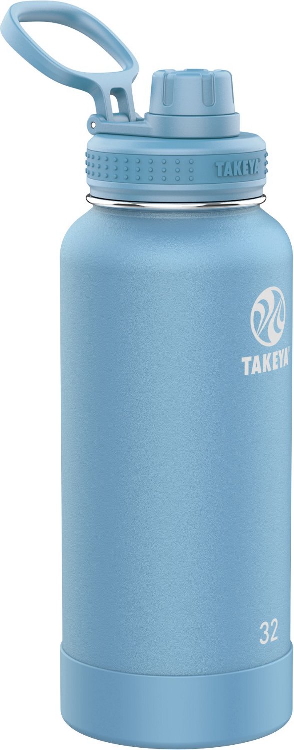 Stay hydrated on the go with help from the Takeya Actives 32 oz Spout Bottle. The double-wall design prevents bottle sweating and the powder-coated construction promotes a secure grip. The vacuum insulation keeps your beverages cold and the leak-proof Spout Lid™ ensures your drinks are secure.