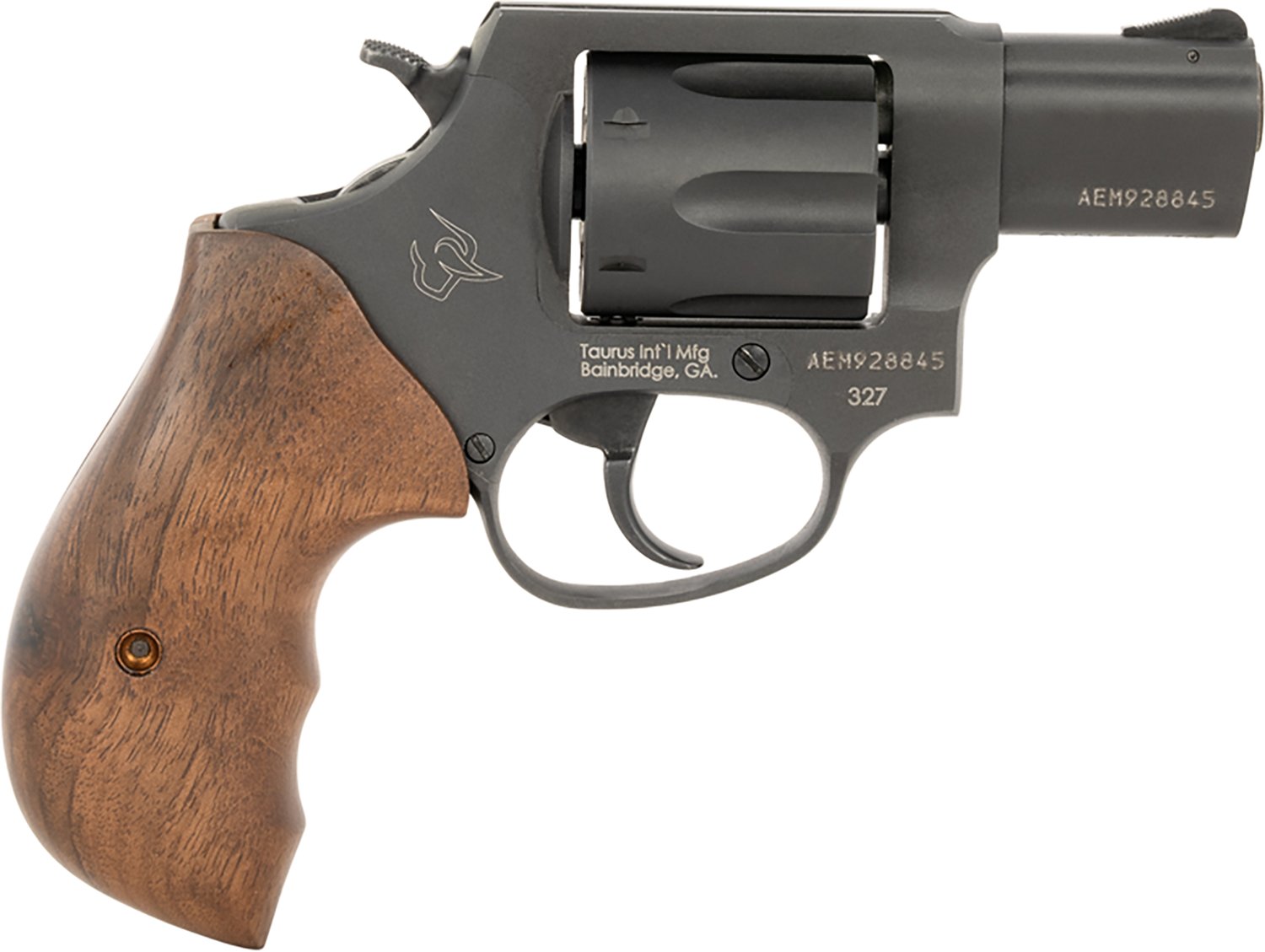 The Taurus 327 .327 Federal Mag Revolver is single/double action and has a 6-round capacity. It's built with a carbon steel barrel, cylinder and frame and it features a walnut grip. Removable front and fixed rear sights and an exposed hammer safety complete the design.