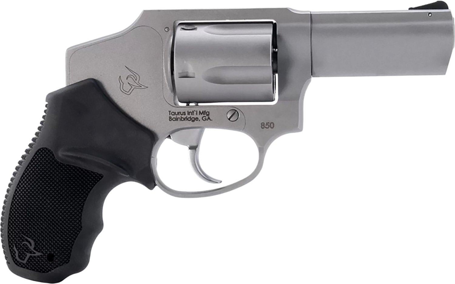 Arm yourself with the Taurus 850 .38 Special Double Action Revolver. It is double action with a 5-round capacity. The barrel with a Matte Stainless finish is 3-inches long, and it is equipped with a black rubber grip. The removable blade front sight and fixed rear sight finish off the design.