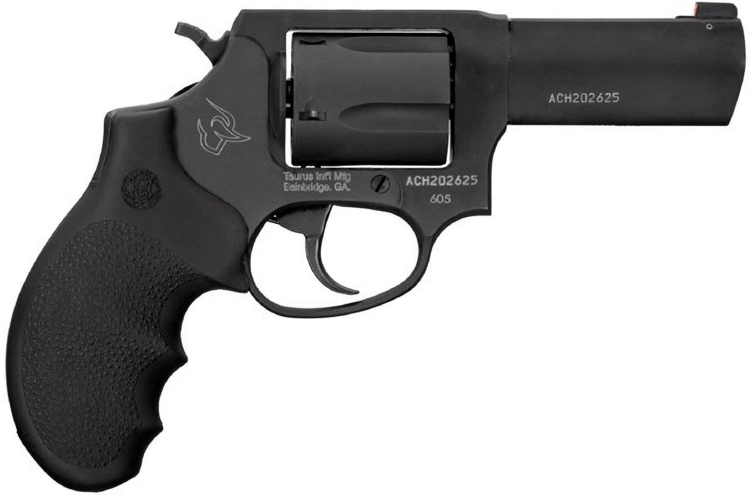 Use the Taurus Defender 605 357 Magnum Single/Double Action Revolver for defense when you need it most. Featuring special Hogue®Rubbe grips, this revolver comes with a transfer bar and extended ejector rod. The revolver also includes a front night sight and fixed rear sight.