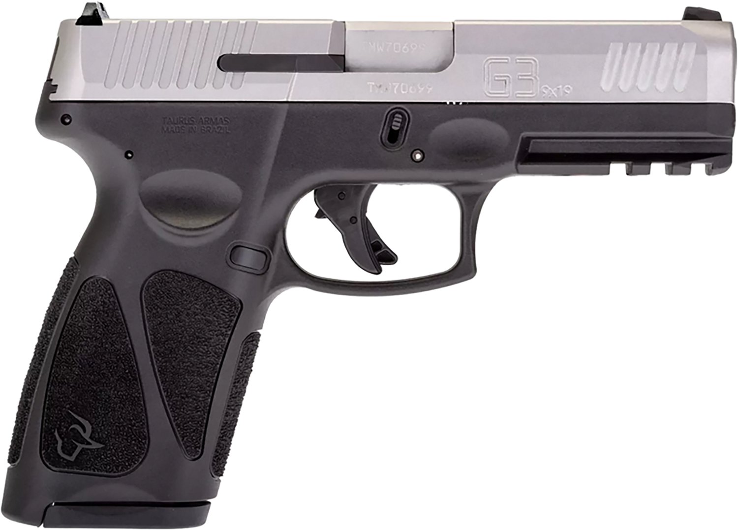 Make accurate shots with this Taurus G3 9mm 4 in 10-Round Pistol. It has a 10+1 round capacity to fire off up to 11 rounds consecutively, and the pistol features a fixed front sight and an adjustable rear sight to help you dial in your aim. Comes with two 10-round magazines.