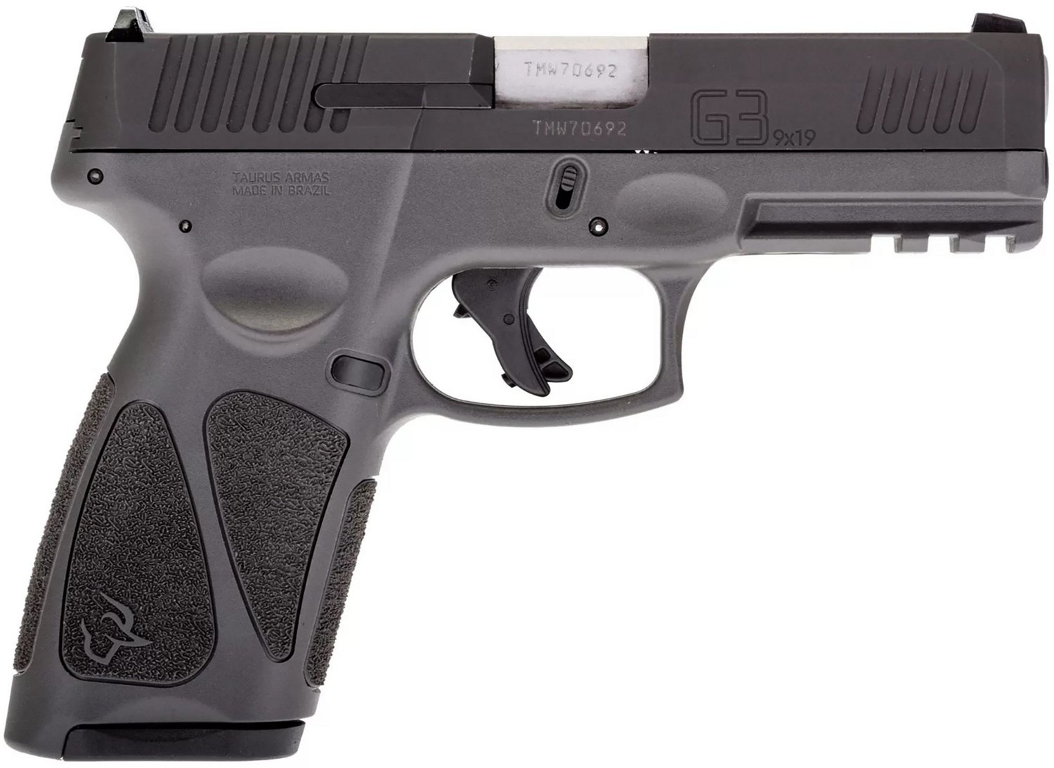 The Taurus G3 9mm Luger 4 in Centerfire Pistol is crafted with a polymer frame and a steel slide. The design is complemented with a 4-inch stainless steel barrel, a polymer grip, a fixed front sight and an adjustable rear sight.