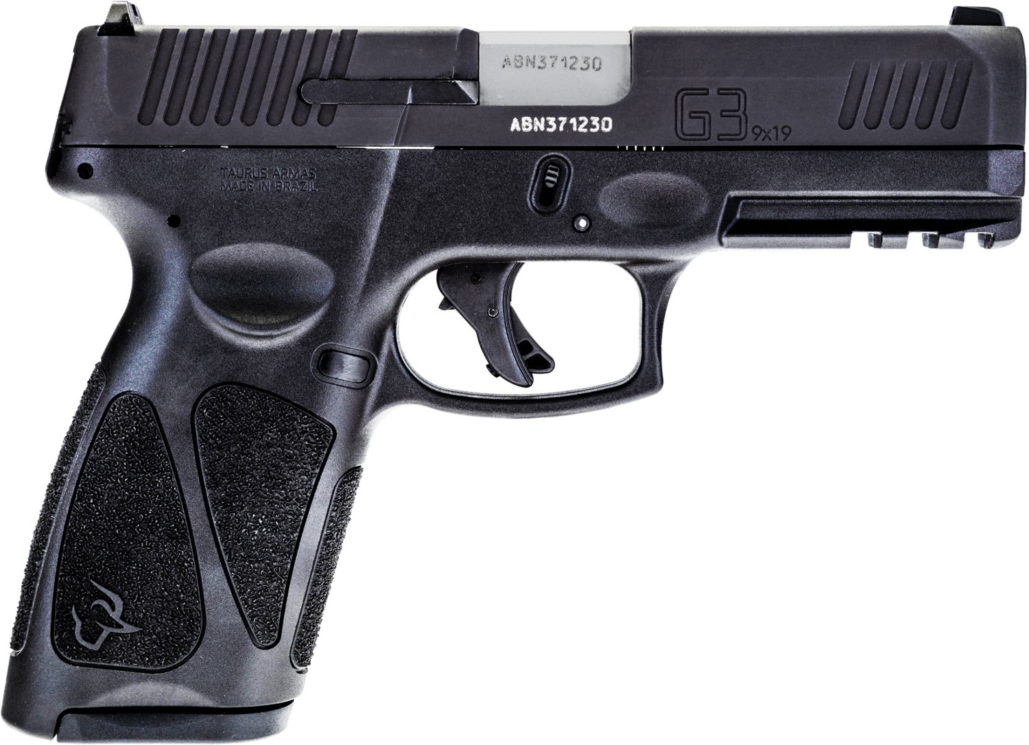 The Taurus G3 9mm Pistol is a single action pistol built with a stainless steel barrel, a tenifer black slide and a black polymer frame. The pistol is outfitted with a fixed white dot front sight and a serrated drift adjustable rear sight, while the manual and trigger safety with a striker block and a loaded chamber indicator ensure safe usage.