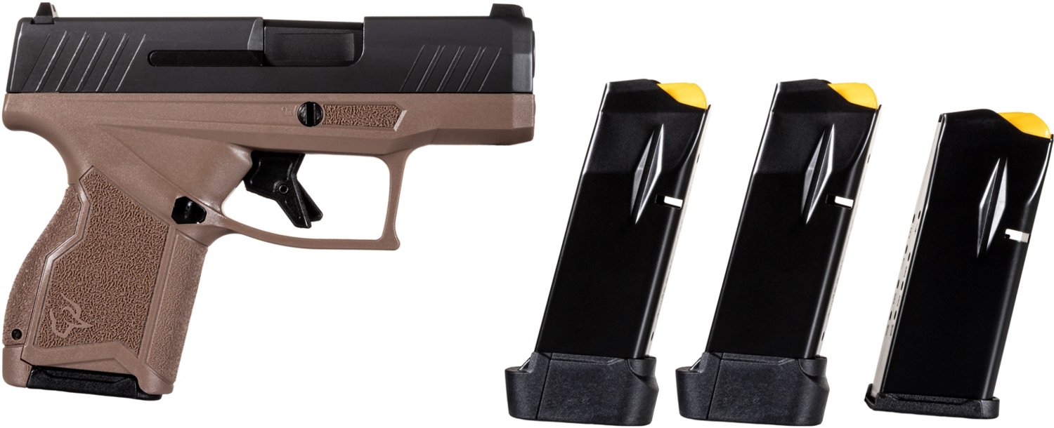 The Taurus GX4 9mm Pistol features semiautomatic action and a polymer grip. It also has a fixed front sight and a drift-adjustable rear sight.