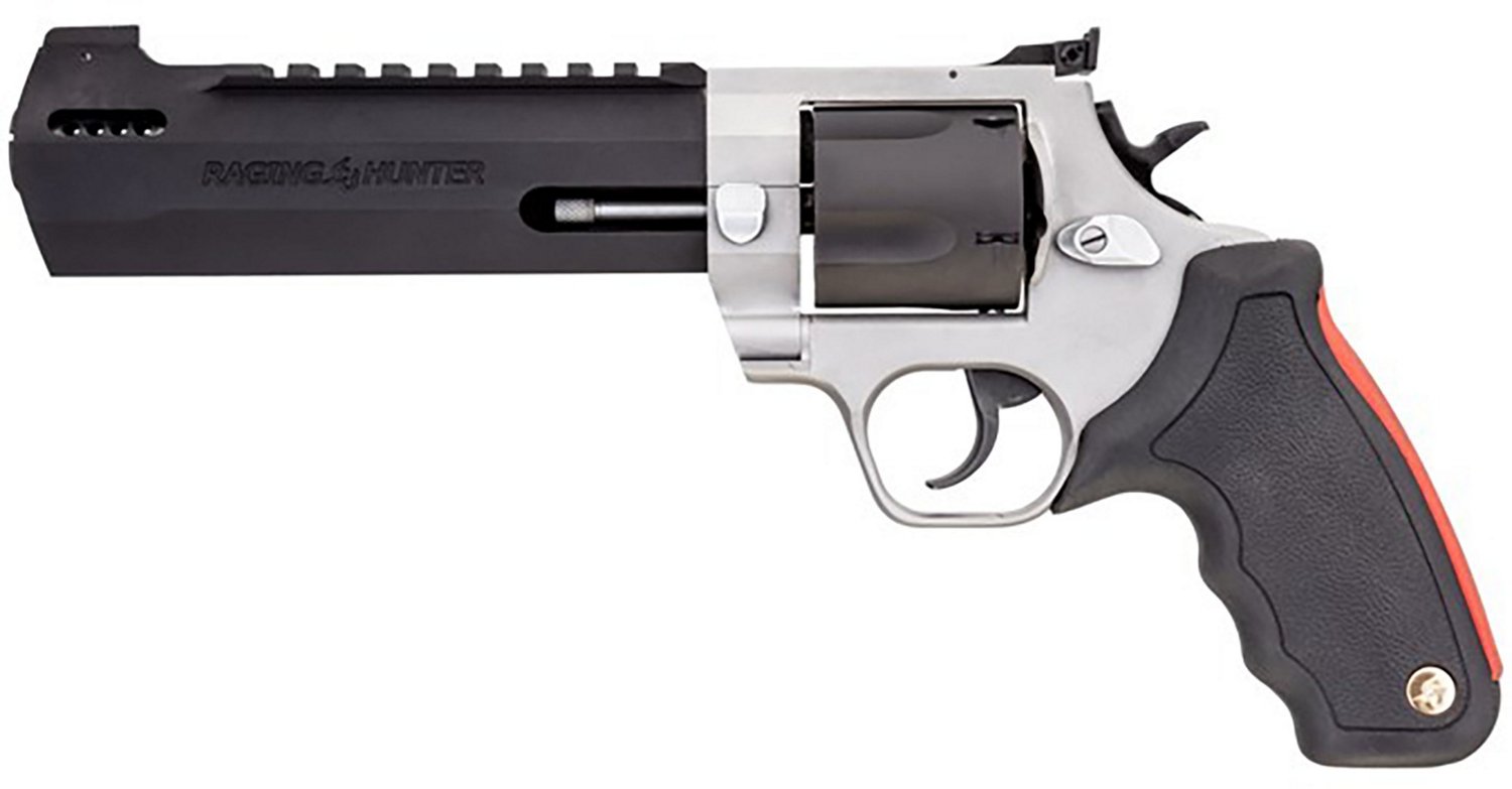 The Taurus Raging Hunter 454 Casull Single/Double Action Revolver is designed with user comfort in mind. The revolver comes with a fixed front sight and adjustable rear sight with a scope mount. This revolver also features an angular barrel design, and it includes cushioned insert grips.