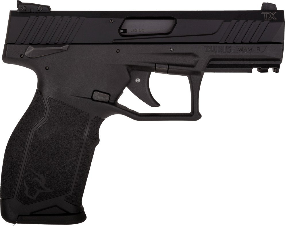 Introducing the Taurus TX22 .22 LR Semiautomatic Rimfire Pistol. Boasting a barrel length of 4.10 inches and a capacity of 16 rounds. This single action-only pistol comes equipped with a fixed white dot front sight and adjustable rear sight. With two included magazines, a Picatinny rail, and a threaded barrel for versatility, the TX22 stands ready. Designed with a full-size frame made of durable polymer and an aluminum slide, it measures 7.06 inches in length, 5.44 inches in height, and 1.25 inches in width, providing a comfortable grip and handling. Featuring a manual safety, striker block, and trigger safety.